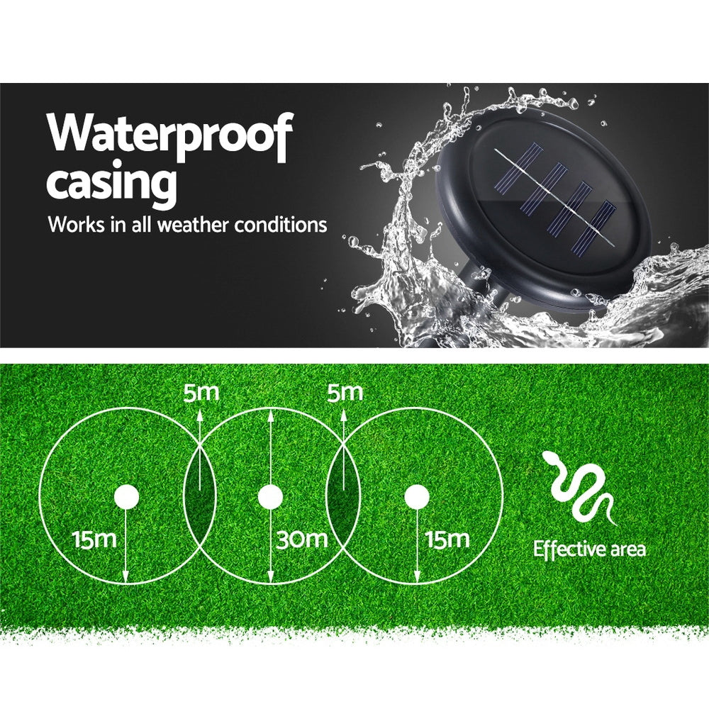 Suitable for your garden, yard, farm and orchard, these snake repellers are powered by a rechargeable NI-MH battery which is charged by a solar panel, enabling a full operating all night.