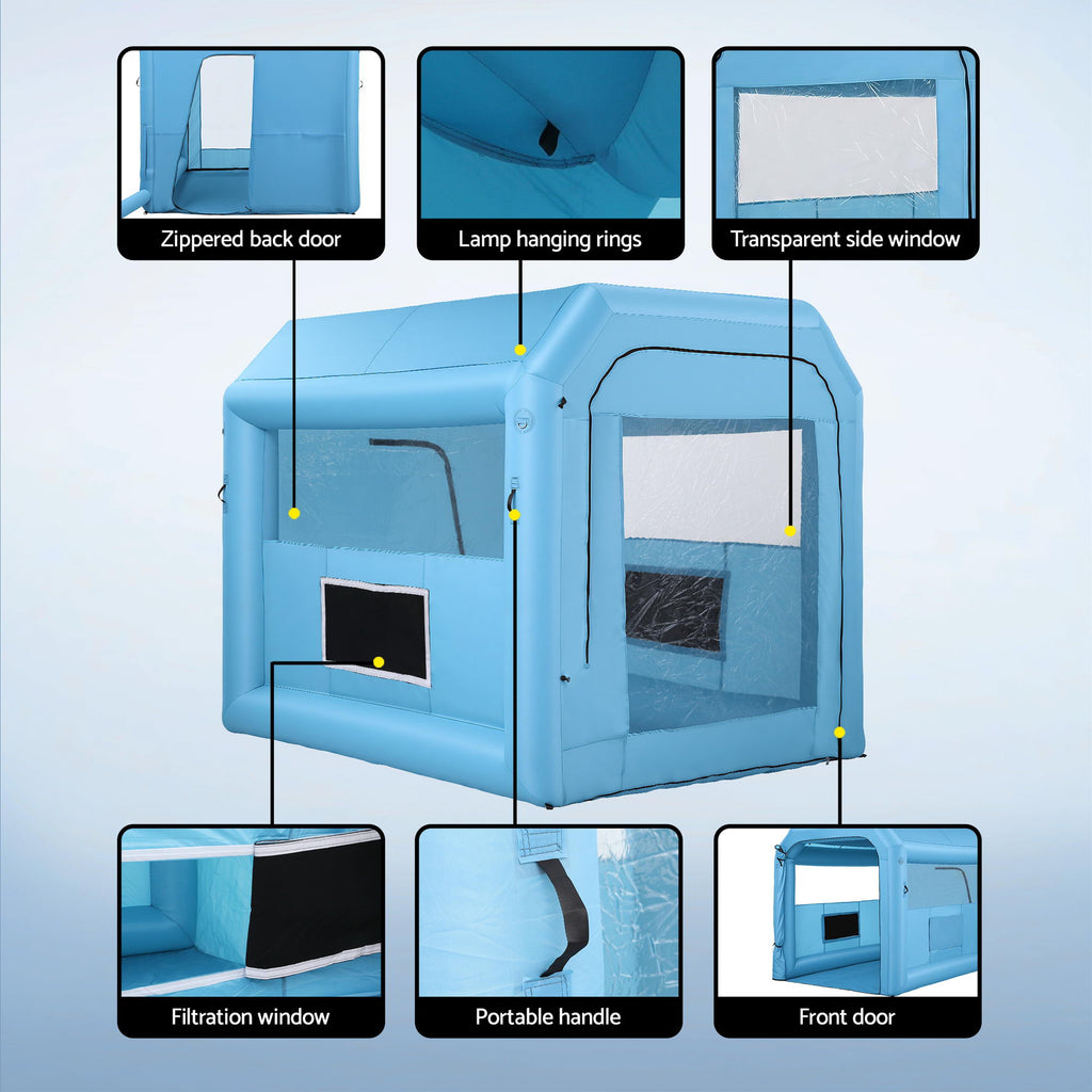 Giantz Inflatable Paint Booth 2.5X2.5X3M Inflatable Spray Booth with 550W Powerful Blower and Air Filter System, Round Roof with Light Hook, for Painting Bicycle, Motorcycle, Furniture Refinishing DIY