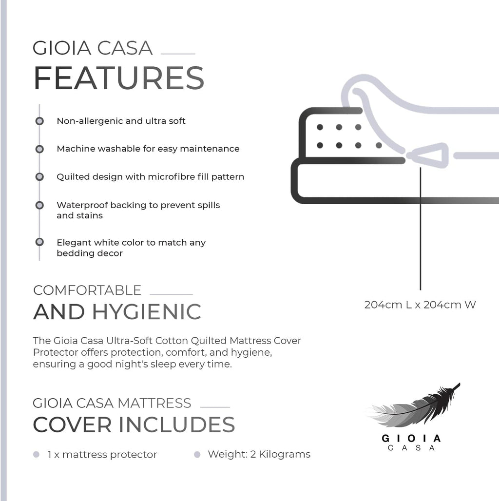 100% Ultra-Soft Cotton Quilted Anti-Microbial Mattress Cover Protector - Super King Size
