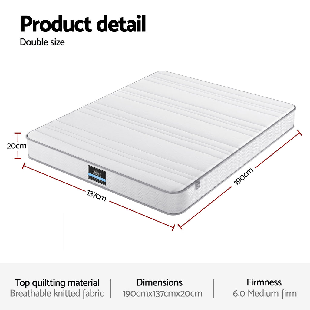 Giselle Double Mattress 20cm with Reinforced Edge Support Egg-Crate Foam