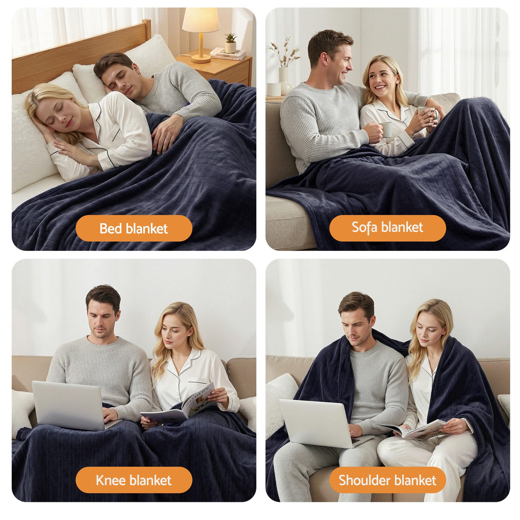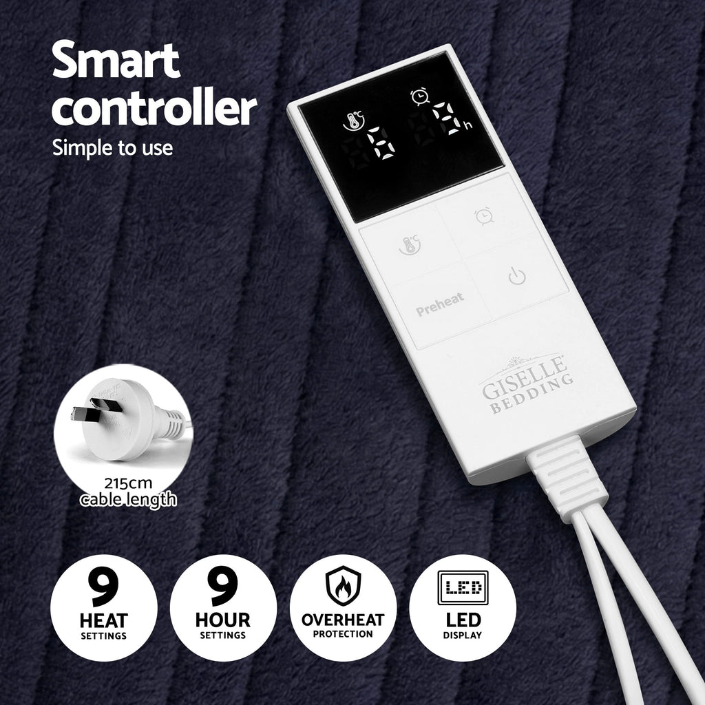 Giselle Electric Throw Rug Double Size 200x180cm Coral Fleece Heated Blanket Charcoal