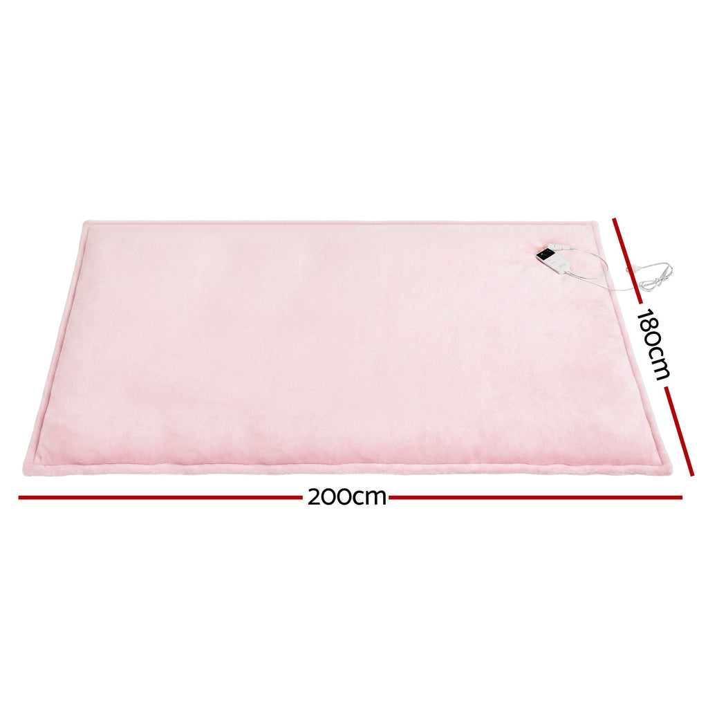 Giselle Electric Throw Rug Double Size 200x180cm Fleece Flannel Heated Blanket Pink