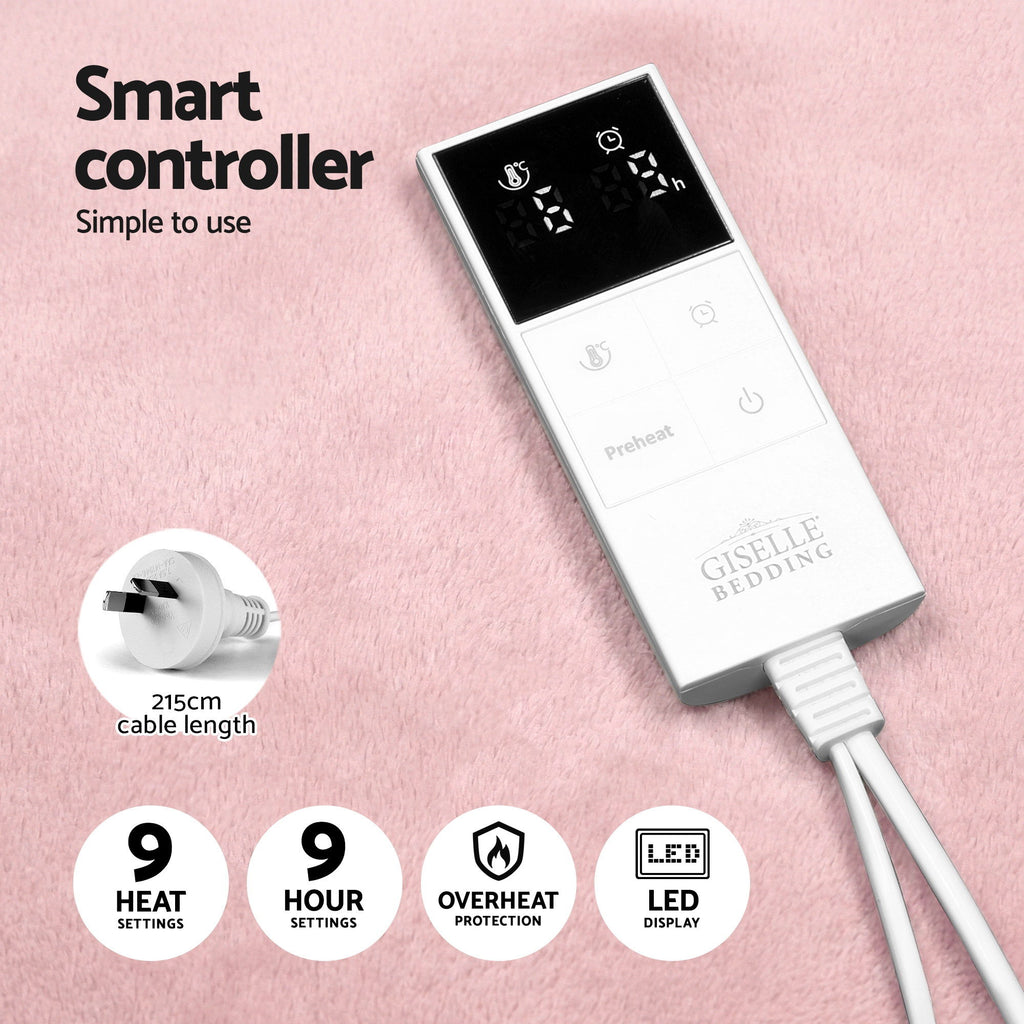 Giselle Electric Throw Rug Dual Side Fleece Flannel Heated Blanket Pink