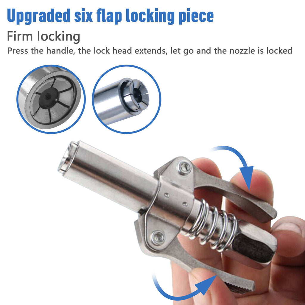 Leak-free Design High Pressure Up To 10000 PSI:six-lobe lock cylinder grease nipple, more tightly clamped prevent leakage even at extreme pressures of 10000 PSI.No more wasted grease mess everywhere.