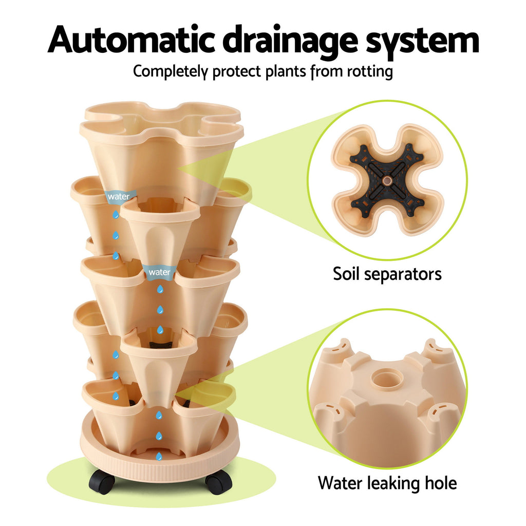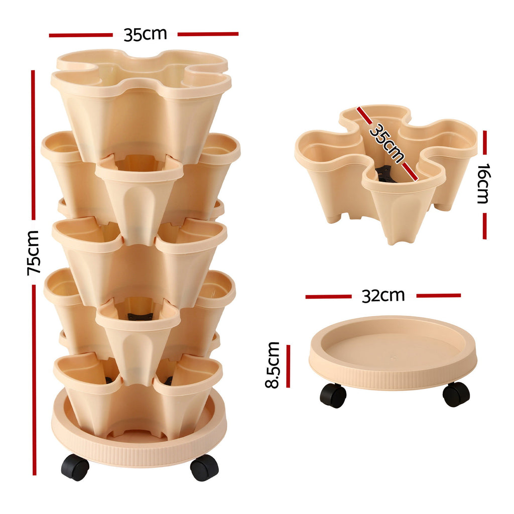 Green Fingers Garden Bed 5 Tier Vertical Garden Grey Strawberry Stackable Planters Herbs Beige