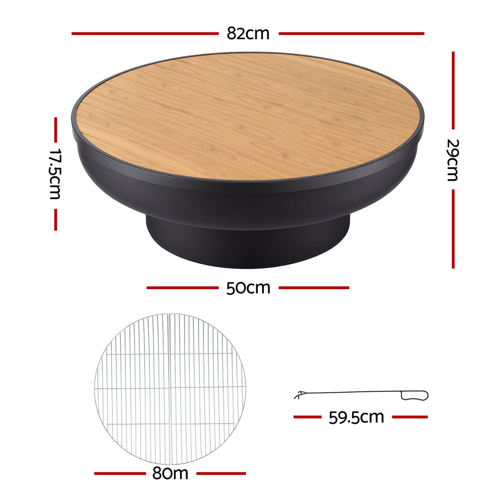 Grillz Fire Pit Table with Lid Deep Fire Bowl Wood Burning BBQ Grill for Backyard Camping Patio Picnic