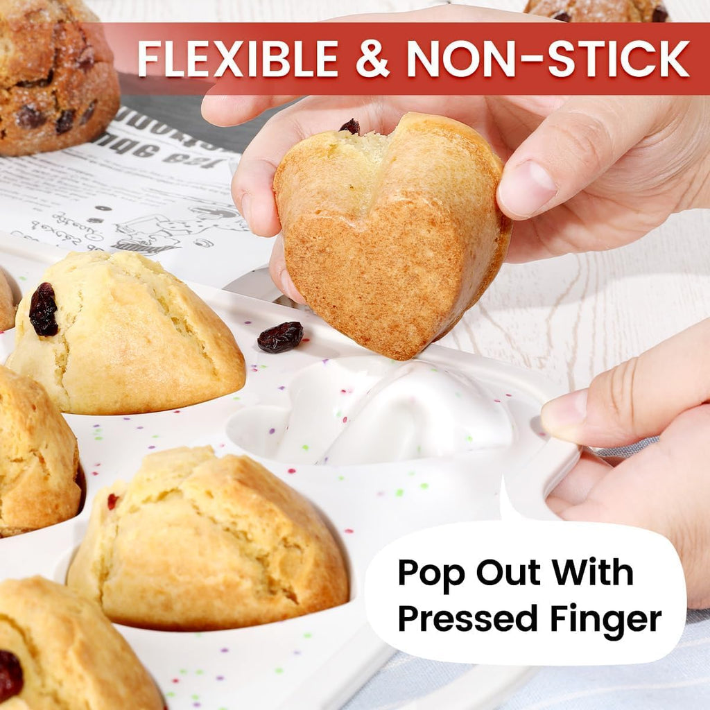 Nonstick and Easy Release: Our heart muffin pan has a smooth surface that is non-stick. Simply gently squeeze the bottom of the cup and the muffin will pop out