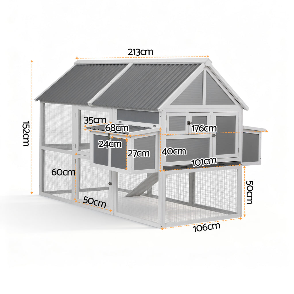 i.Pet Chicken Coop Large Outdoor Rabbit Hutch Chook House Hatch Box With Run Grey White