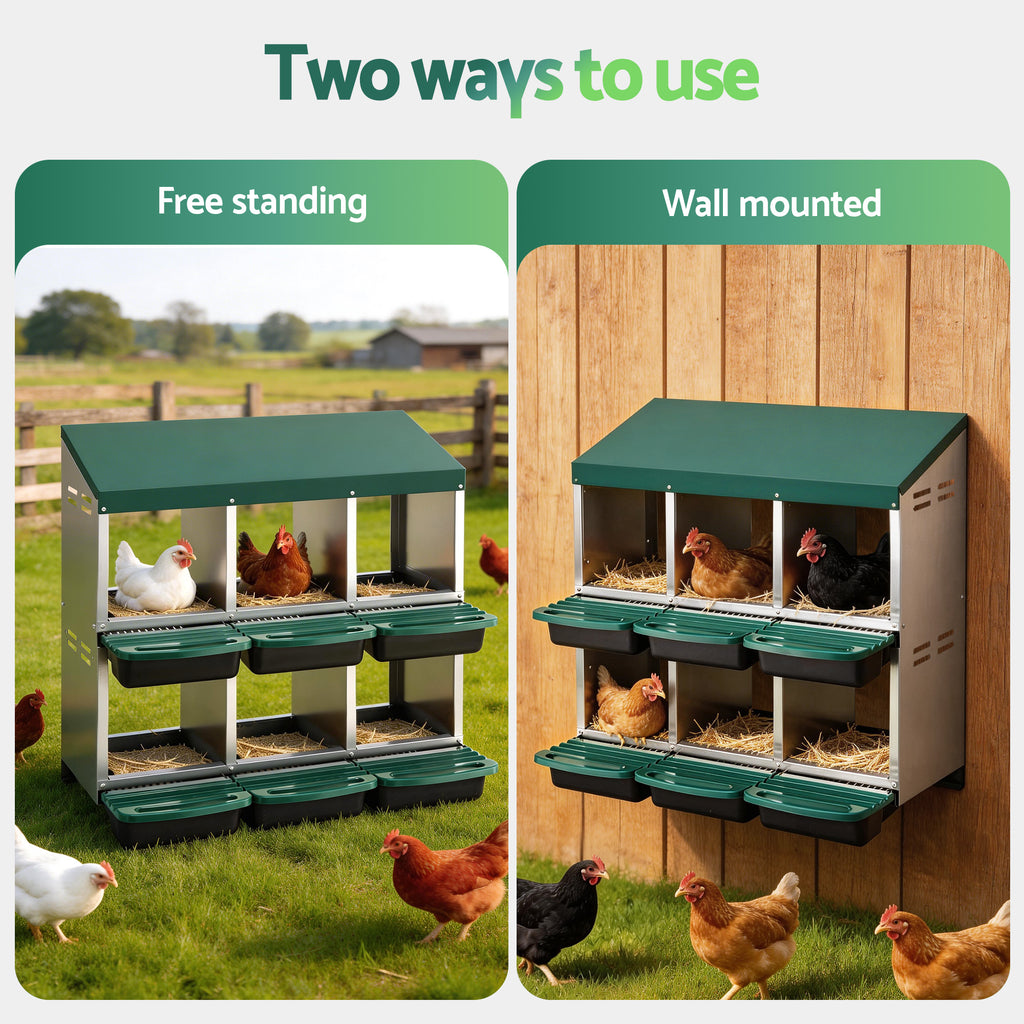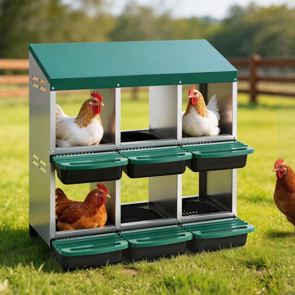 i.Pet Chicken Nesting Box Roll Away Metal Nesting Box Wall Mounted 6 Holes Green