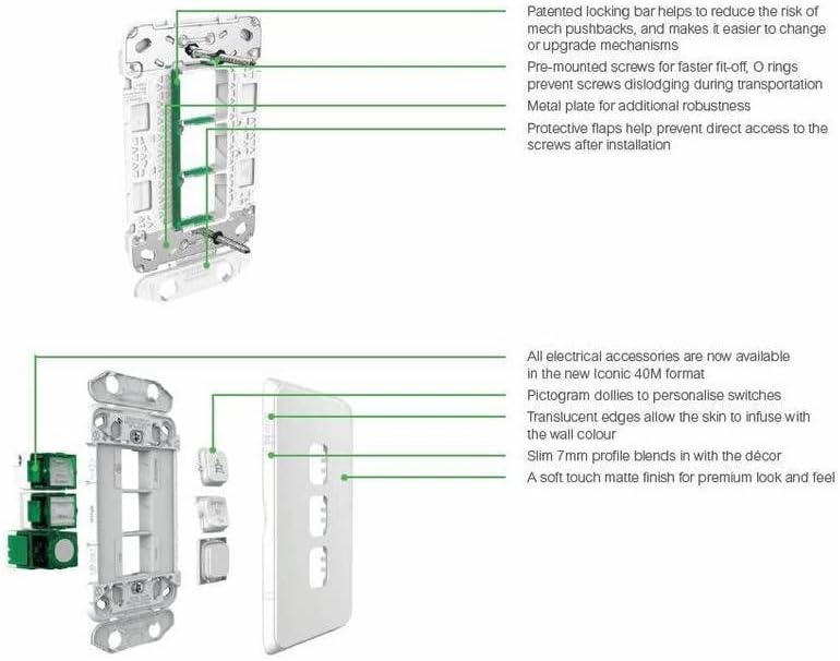 Clipsal Iconic 250V 10AX Vertical Mount 1 Gang LED Flush Switch is ideal for tight spaces in residential spaces. This thin smart light switch is often used on architrave, the moulding around doorways, due to its convenient and compact size.
