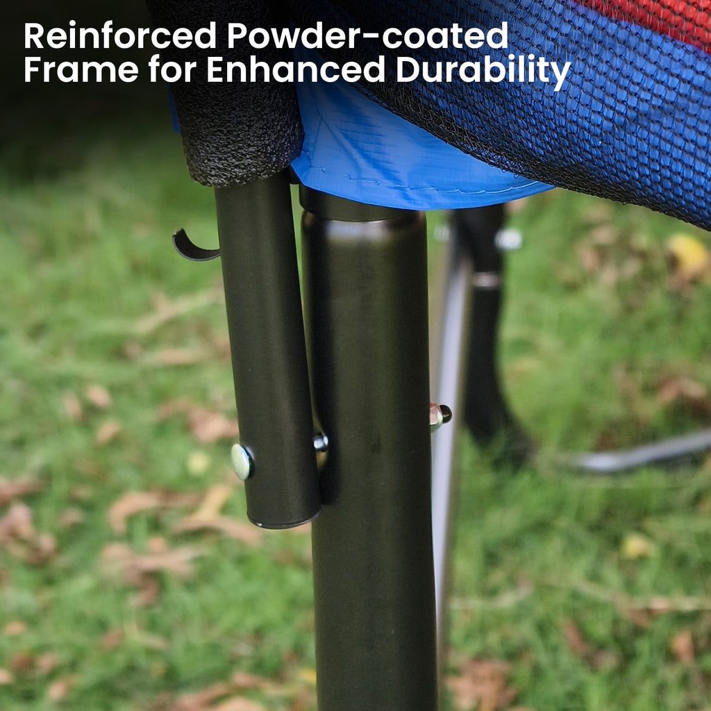 Kahuna 10 ft x 15 ft Oval Outdoor Trampoline L.E.D. Basketball Set Reversible Rainbow & Orange Safety Pad Safety Net Ladder