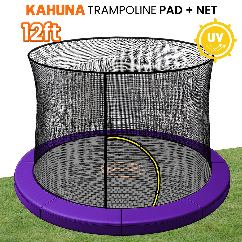 Kahuna 12ft Trampoline Pad and Net - Purple