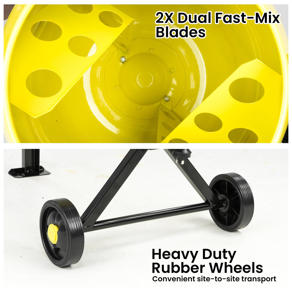 Kartrite Portable 63L Cement Concrete Mixer Dual Mix Blades & Tipper Lock 220W