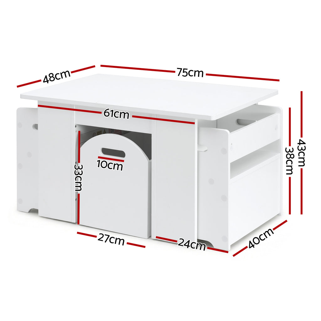 Keezi 3PCS Kids Table and Chairs Set Storage Toys Play Activity Desk