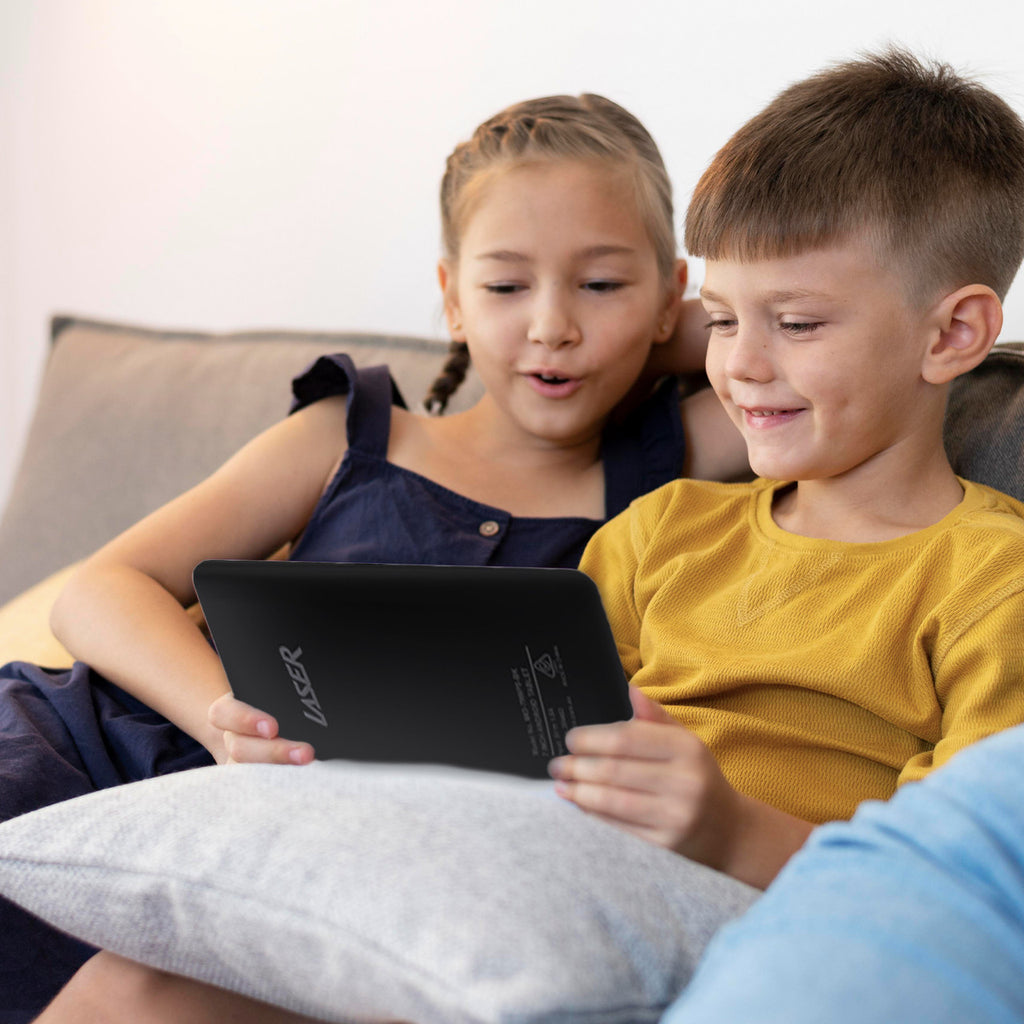 The sleek design makes it easy to carry or place in your bag. The vivid and responsive touchscreen makes it easy to use stay connected with your favorite APPs while youre on the move.Watch your favourite Netflix shows, listen to your favourite playlists, and play games anywhere with this Laser tablet.