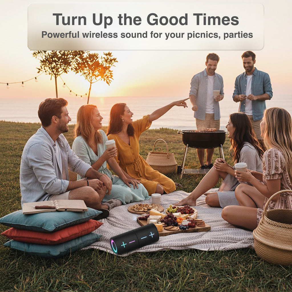 - Splash-resistant design Ready for backyard barbies, beach trips and indoor hangs.