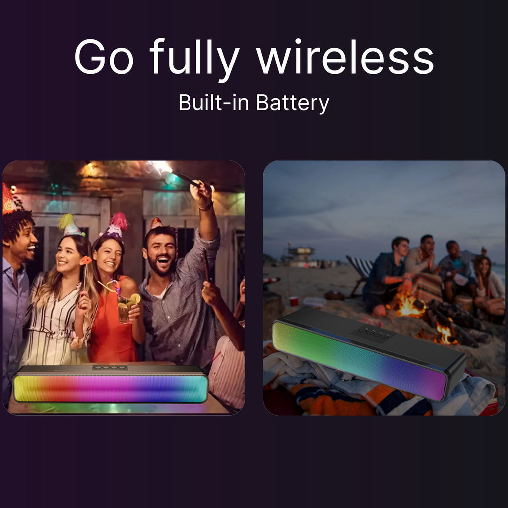 Whether you're a gamer looking to enhance your setup or simply need a portable sound solution, the Laser RGB Bluetooth Gaming Soundbar offers everything you need for an immersive audio experience.