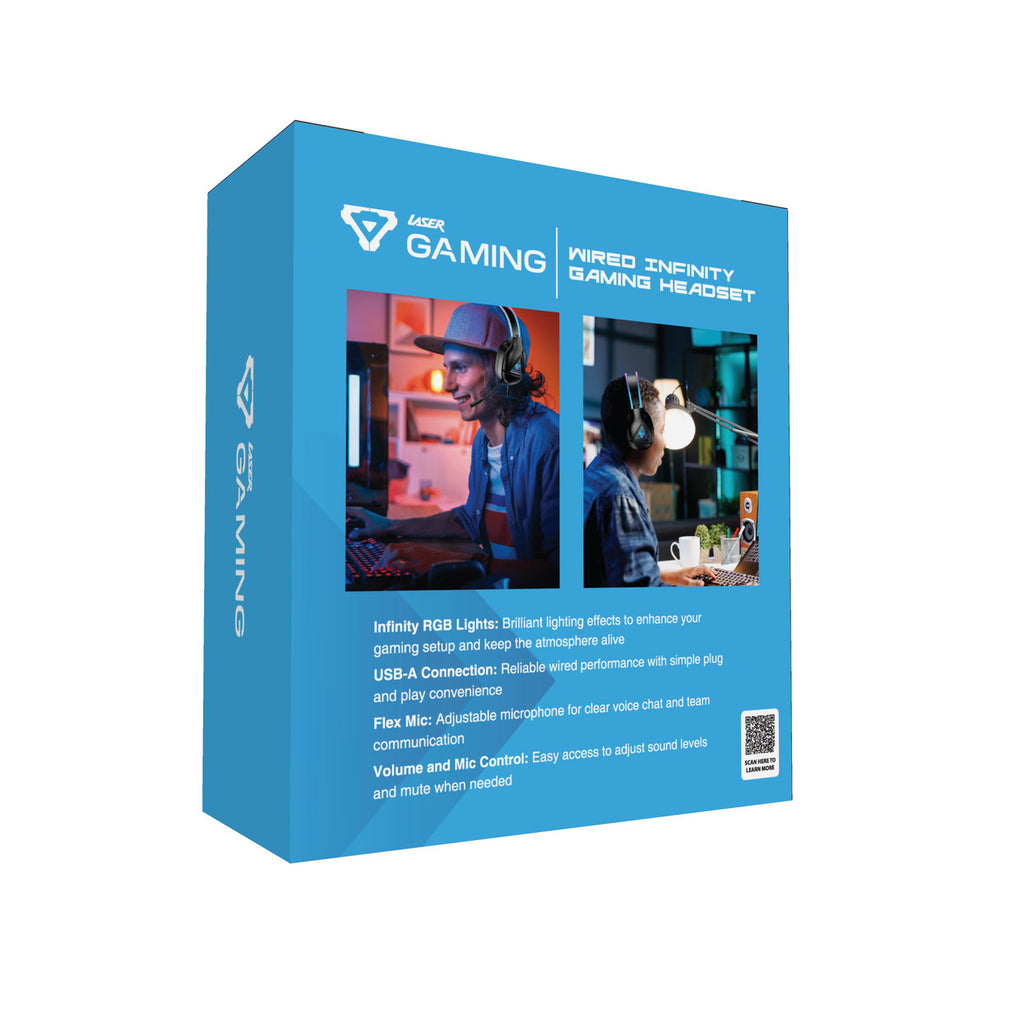 The Laser Gaming Infinity Headphones combines crisp, wired audio performance with bold, customisable RGB illumination that reacts as you play.