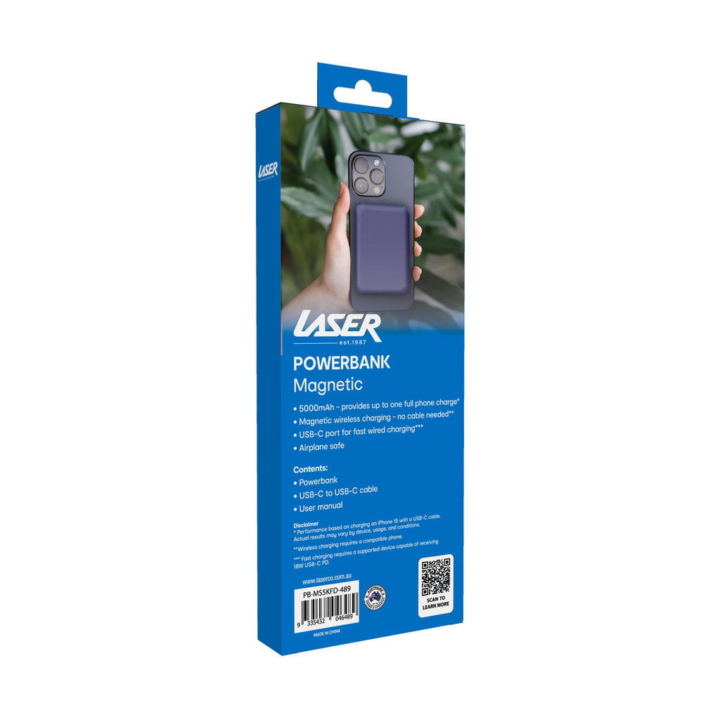 Travel light and stay powered with the Laser 5000mAh Magnetic Power Bank in Future Dusk. Slim, stylish and designed to snap securely to your phone, it keeps your essentials charged without tangled cables.