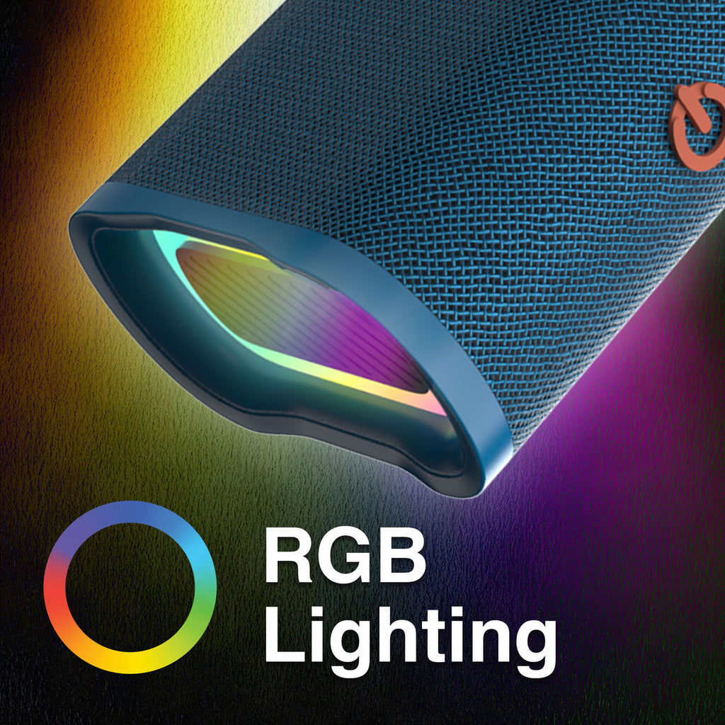 RGB Lighting:The built-in RGB lighting brings a fun, lights to your music, making it perfect for nighttime gatherings, beach bonfires, or backyard hangouts. Its compact design with a carry strap makes it easy to take anywhere, whether it's attached to a backpack, placed on a picnic table, or carried on the go.