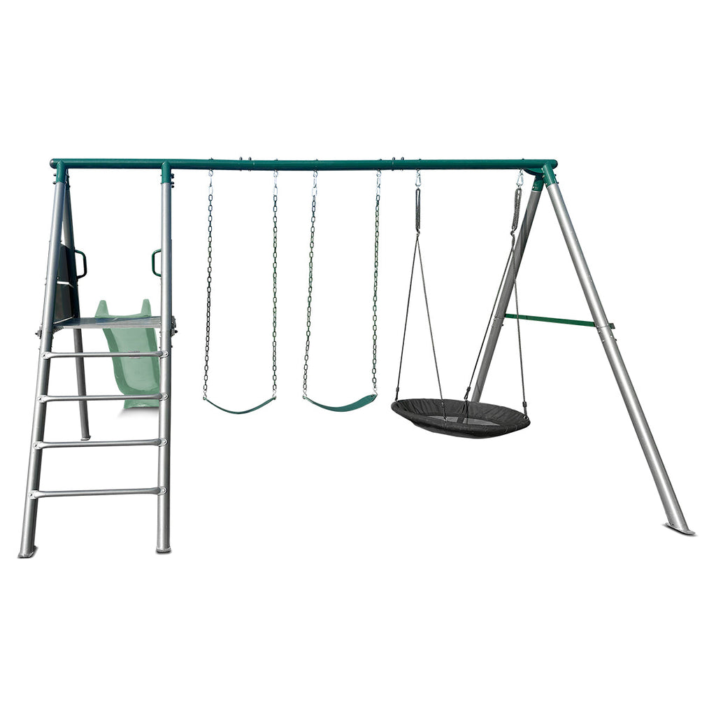 Lifespan Kids Europa Commercial Grade Steel Swing Set with Climb & 2.2m Slide Pastel Green