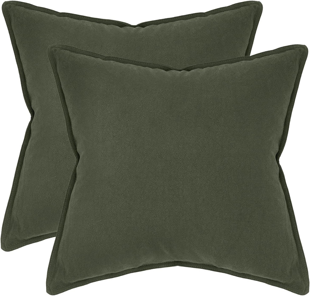 Linen Cushion Covers - 30% Linen 70% Cotton Blend, Soft & Breathable with Hidden Zipper Design - Khaki Green, 45cm x 45cm Twin Pack
