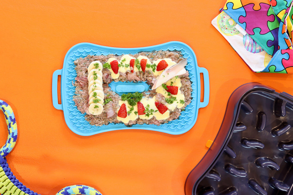 Made from thick, food-grade silicone that won’t curl or tear, it’s built to last through enthusiastic licking and regular dishwasher cycles. Use it as a standalone enrichment tool, a calming aid during bath time, or as a lid for your Super Feedy Slow Feeder Bowl to prep meals ahead or take food on the go. Simple, smart, and stress-reducing — this mat does it all.