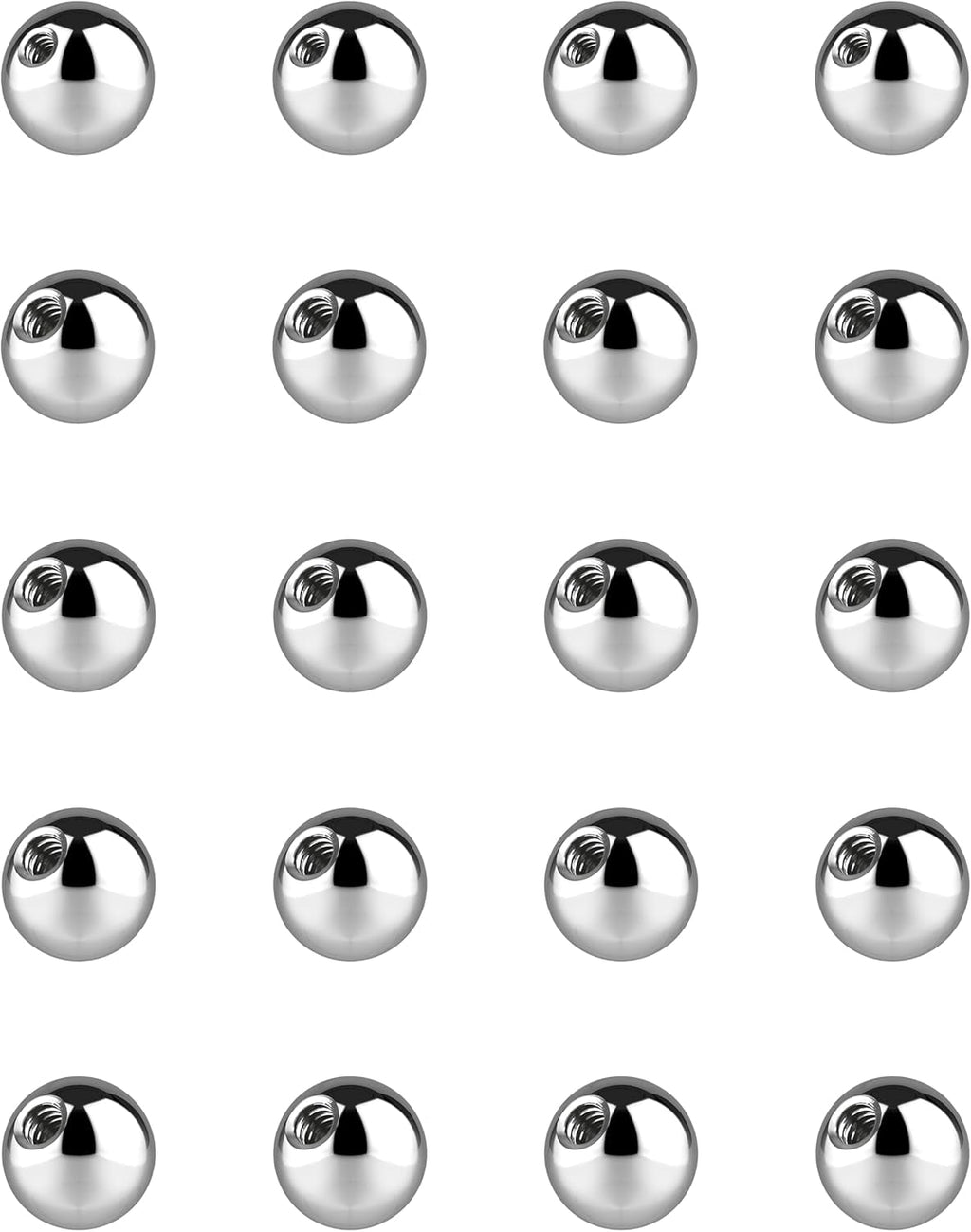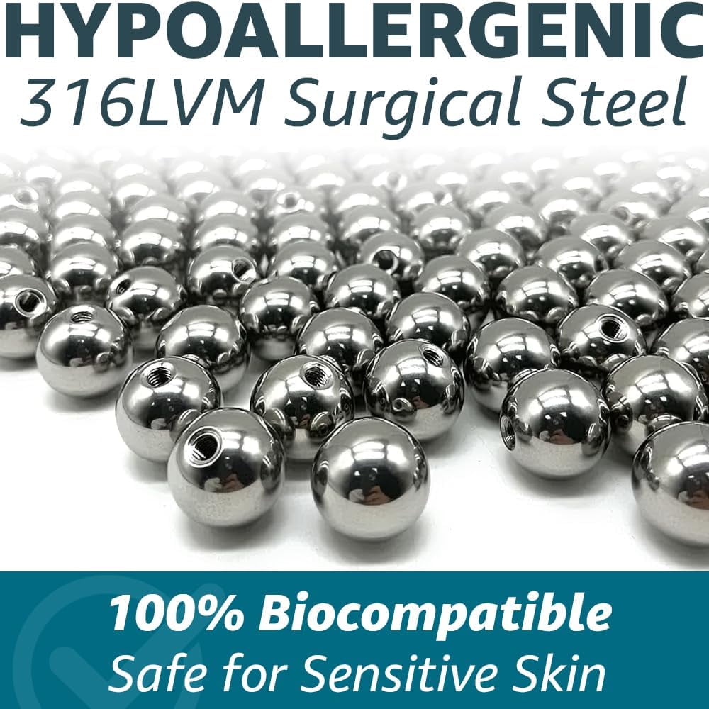 Keep your piercings secure and stylish with these externally threaded replacement balls. Perfect for various piercing types, including anti-eyebrow, earlobe, cartilage,, helix, labret stud lip rings, snake bites, and septum piercings. These replacement balls are compatible with barbell bars, posts, and circular horseshoe rings, ensuring a snug fit for your favorite body jewelry.