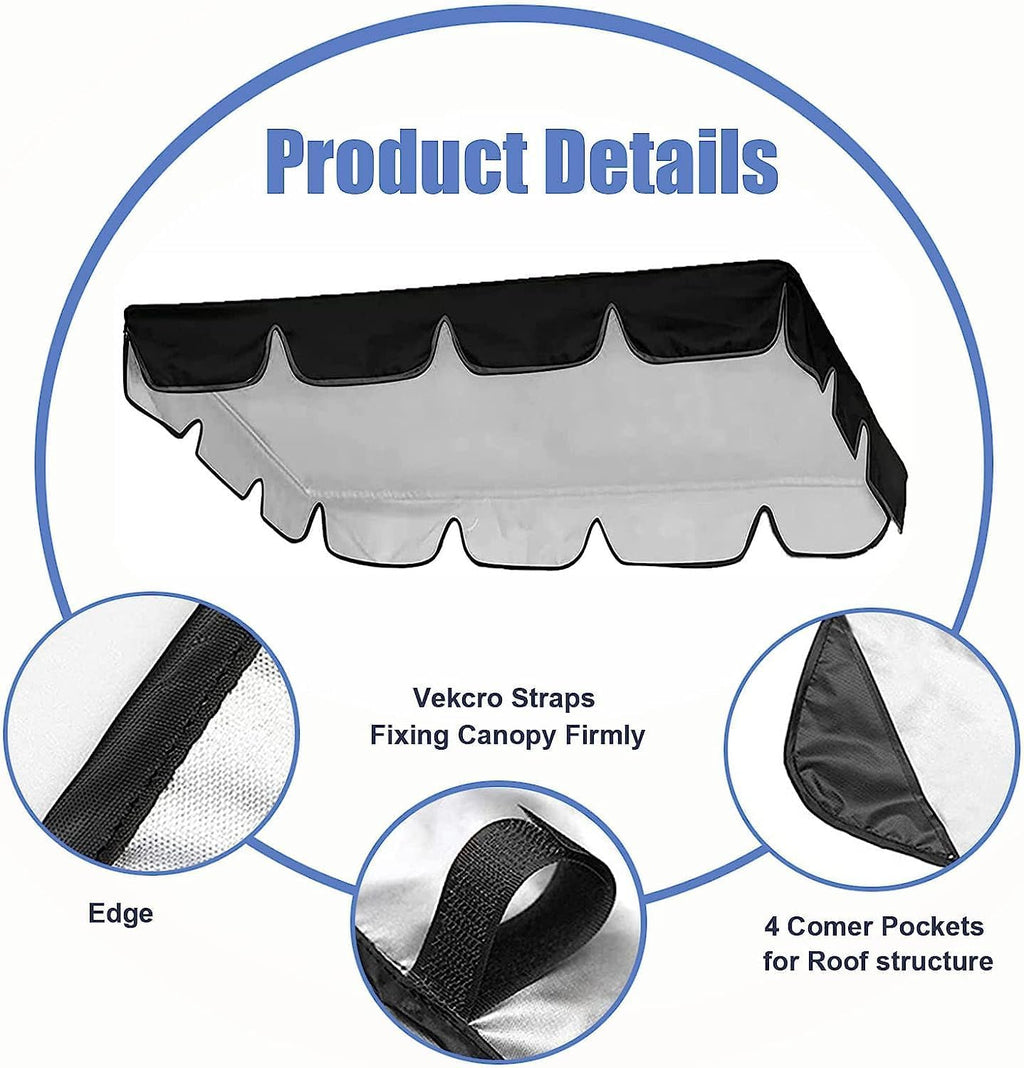 Porch Swing Canopy, Outdoor Swing Cover Replacement Canopy, Swing Canopy Cover Replacement 420D, Top for Porch Patio Garden Pool Seat Grey,65x45x6inch