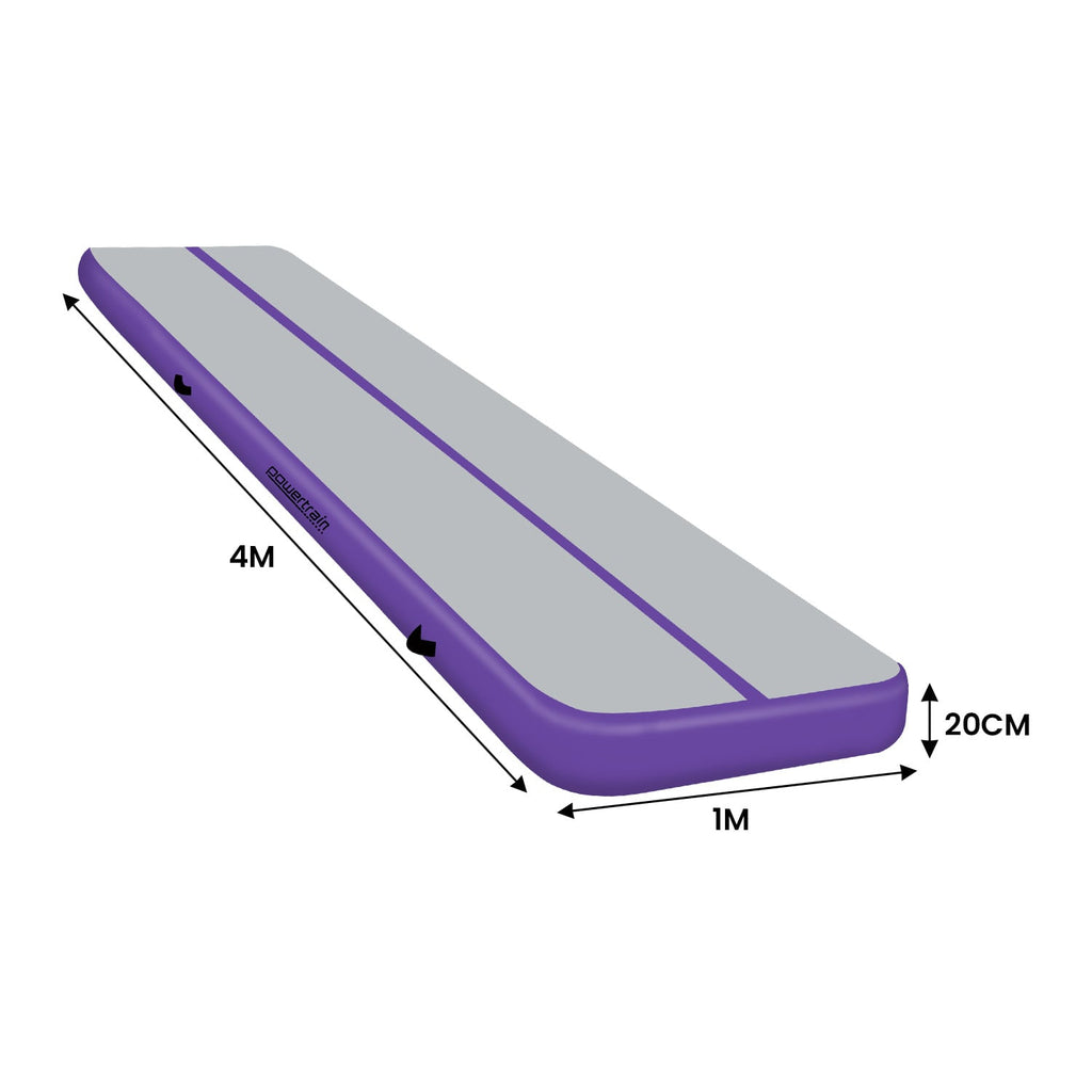 Powertrain Airtrack 20cm Thick 4m x 1m Inflatable Gymnastics Tumbling Mat Air Track - Purple