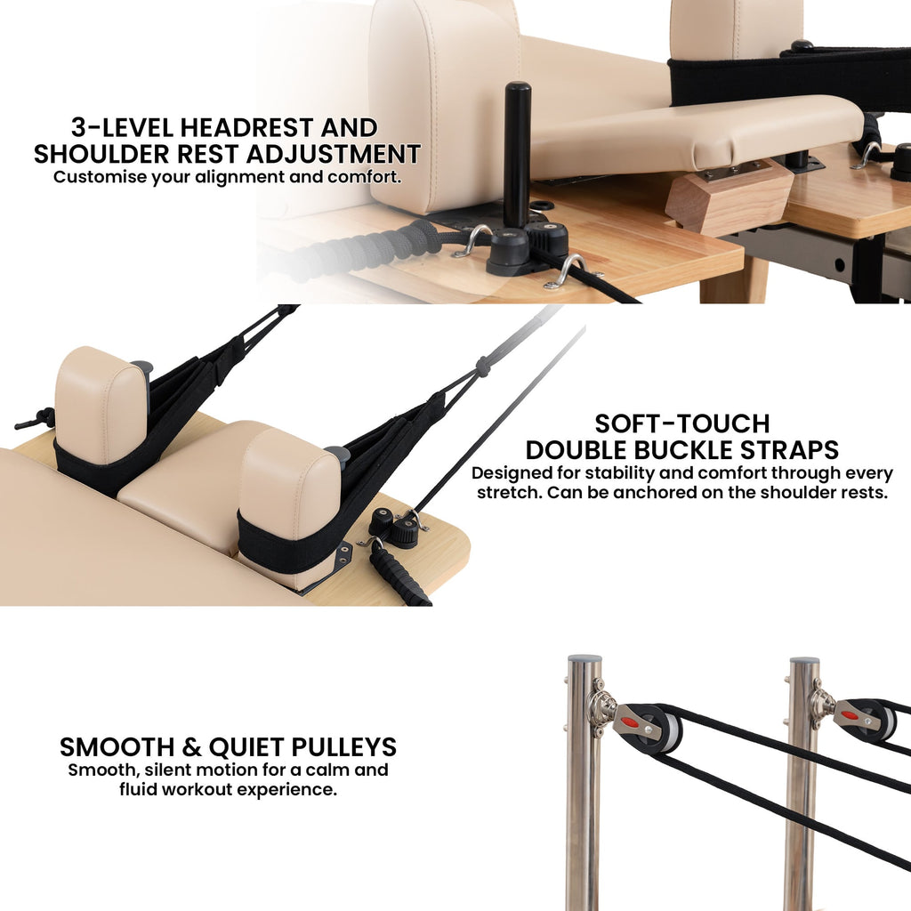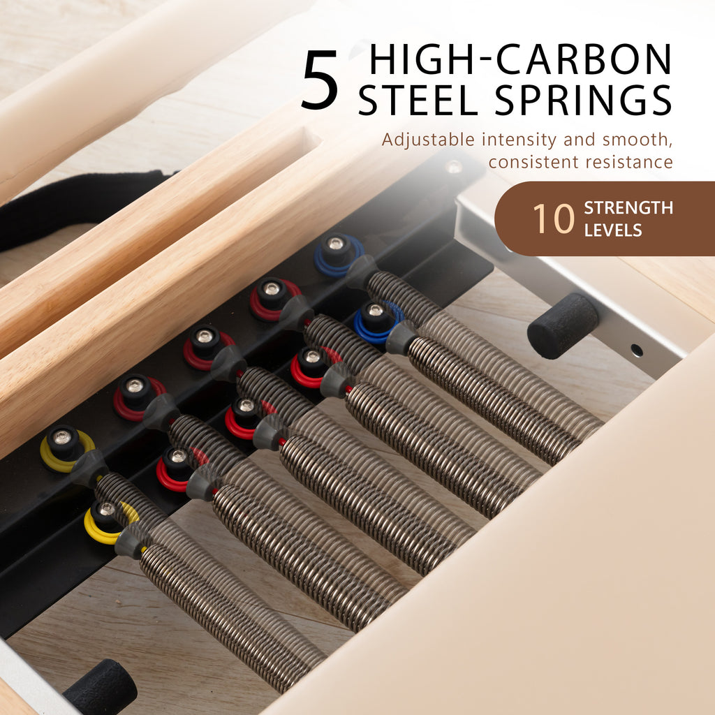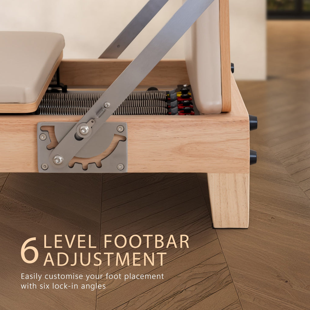 Powertrain Selina Pilates Reformer Machine Wooden Folding Multifunctional Home Gym Equipment with Jumpboard & Sitting Box Oak Beige
