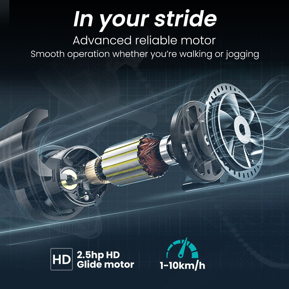 Plug your smartphone in and immerse yourself in your favourite tunes through built-in speakers. Elevate your workout with 3 manual incline levels, simulating natural terrains for enhanced calorie burn in the comfort of your home. Safety is paramount with the included key, halting the treadmill instantly in emergencies, while the Maxi-Grip 5 core running surface ensures comfort, stability and traction.