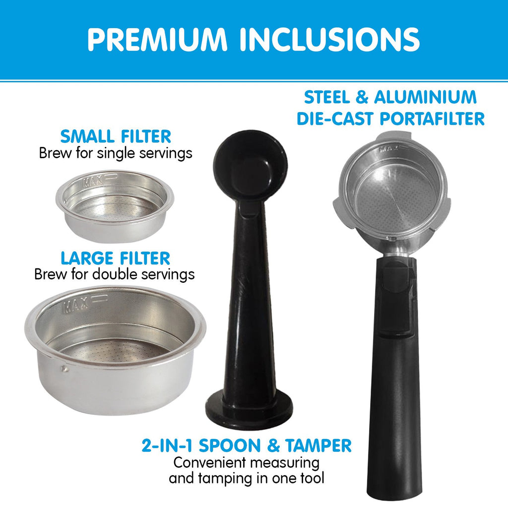 Pronti CM-850D Coffee Machine 20 Bar Espresso Maker with Milk Frother and 1.25L Tank