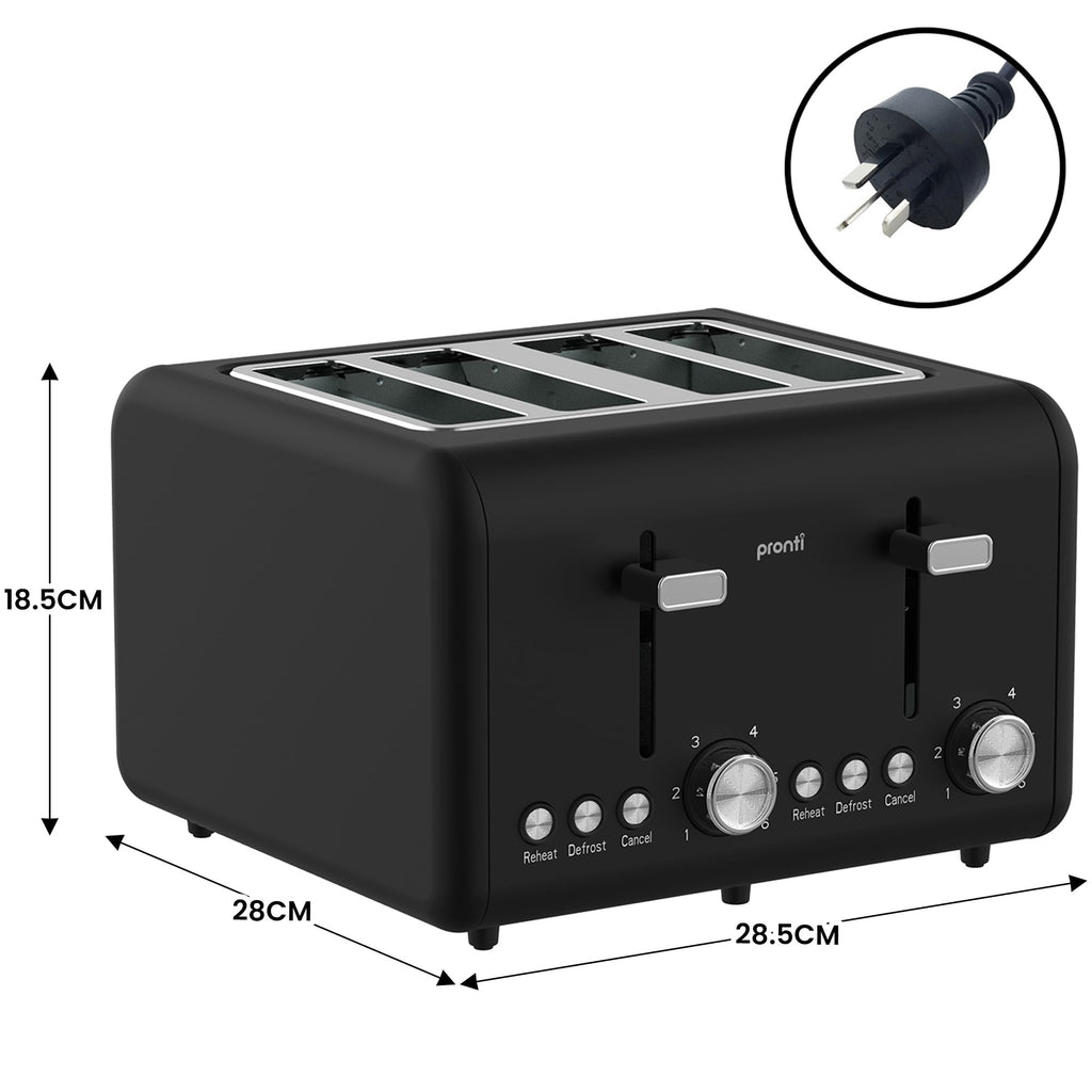 Pronti Silver Noir Collection 4 Slice Toaster and Kettle Bundle