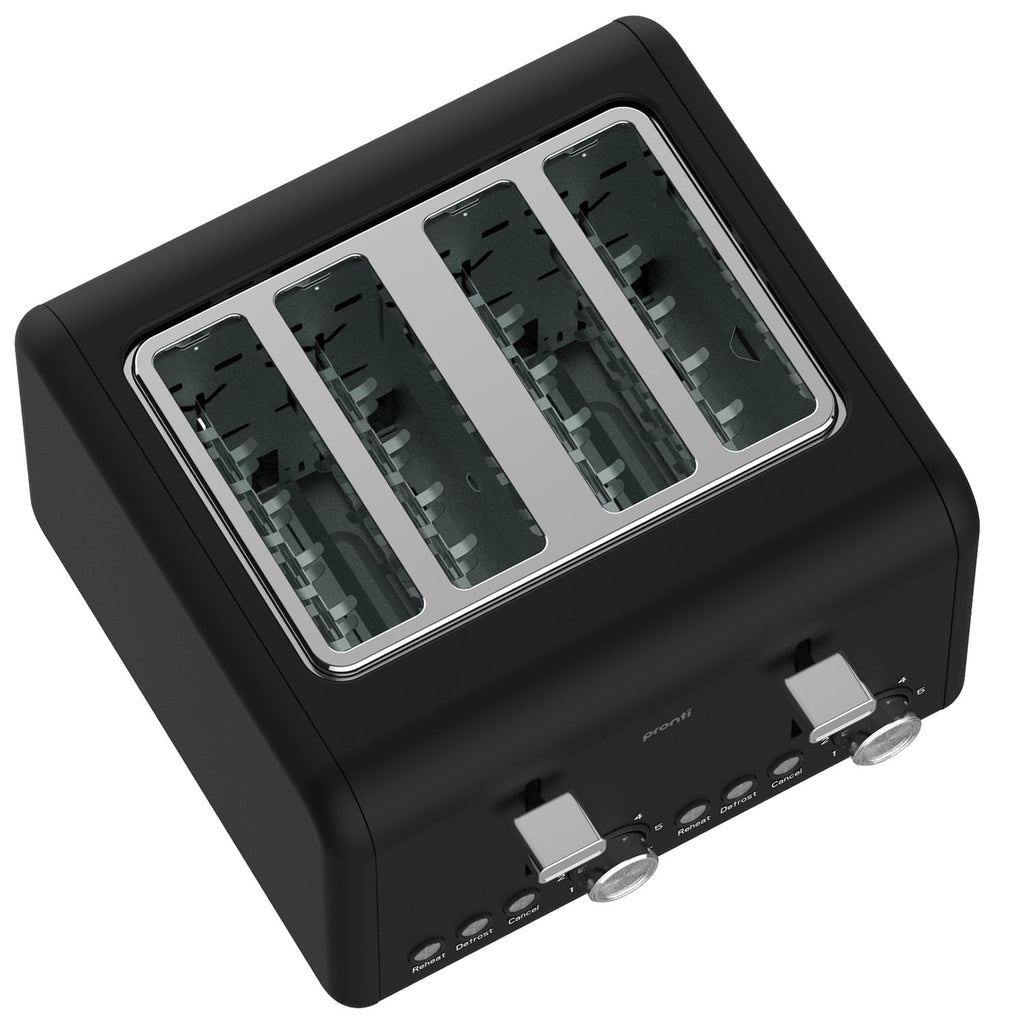 Pronti Silver Noir Collection 4 Slice Toaster with Dual Controls