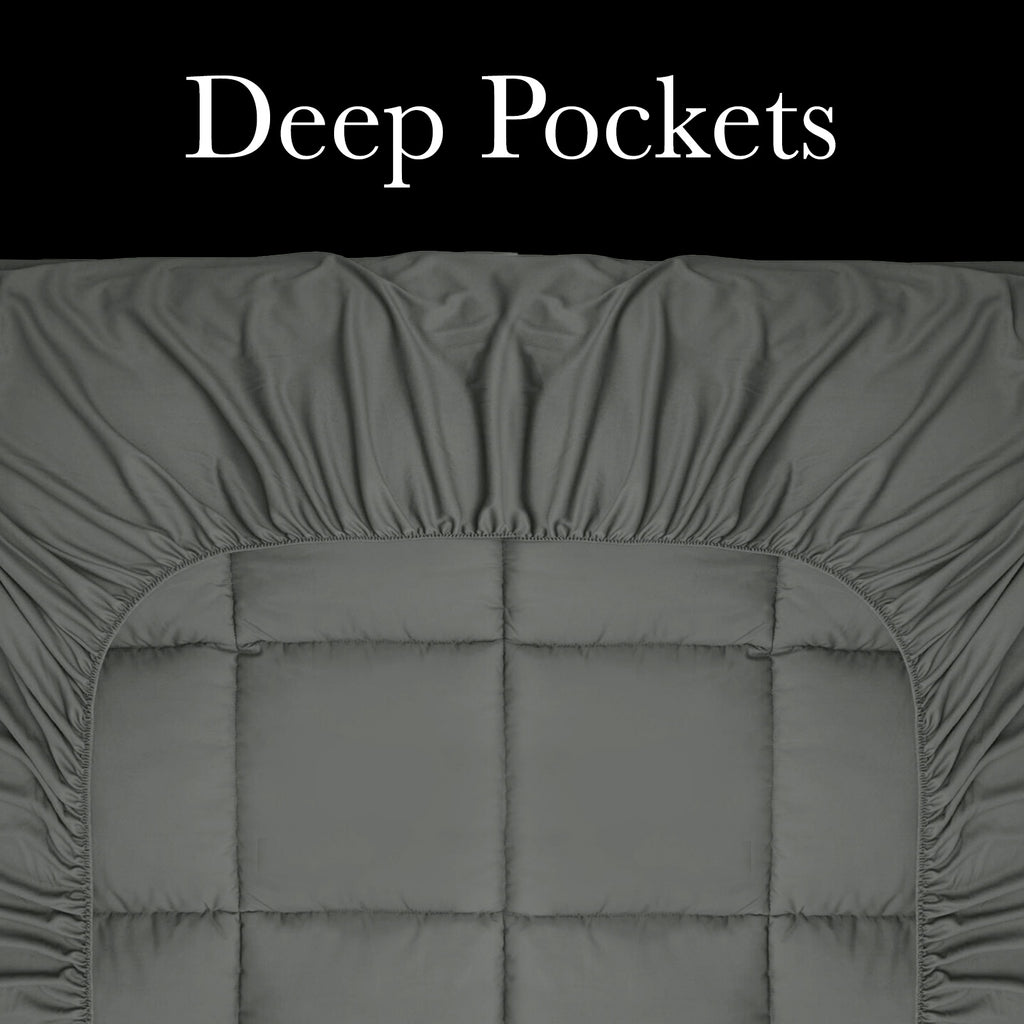 Royal Comfort Charcoal Bamboo Blend Topper 800GSM 45cm Skirt Luxury Bedding - Queen - Charcoal