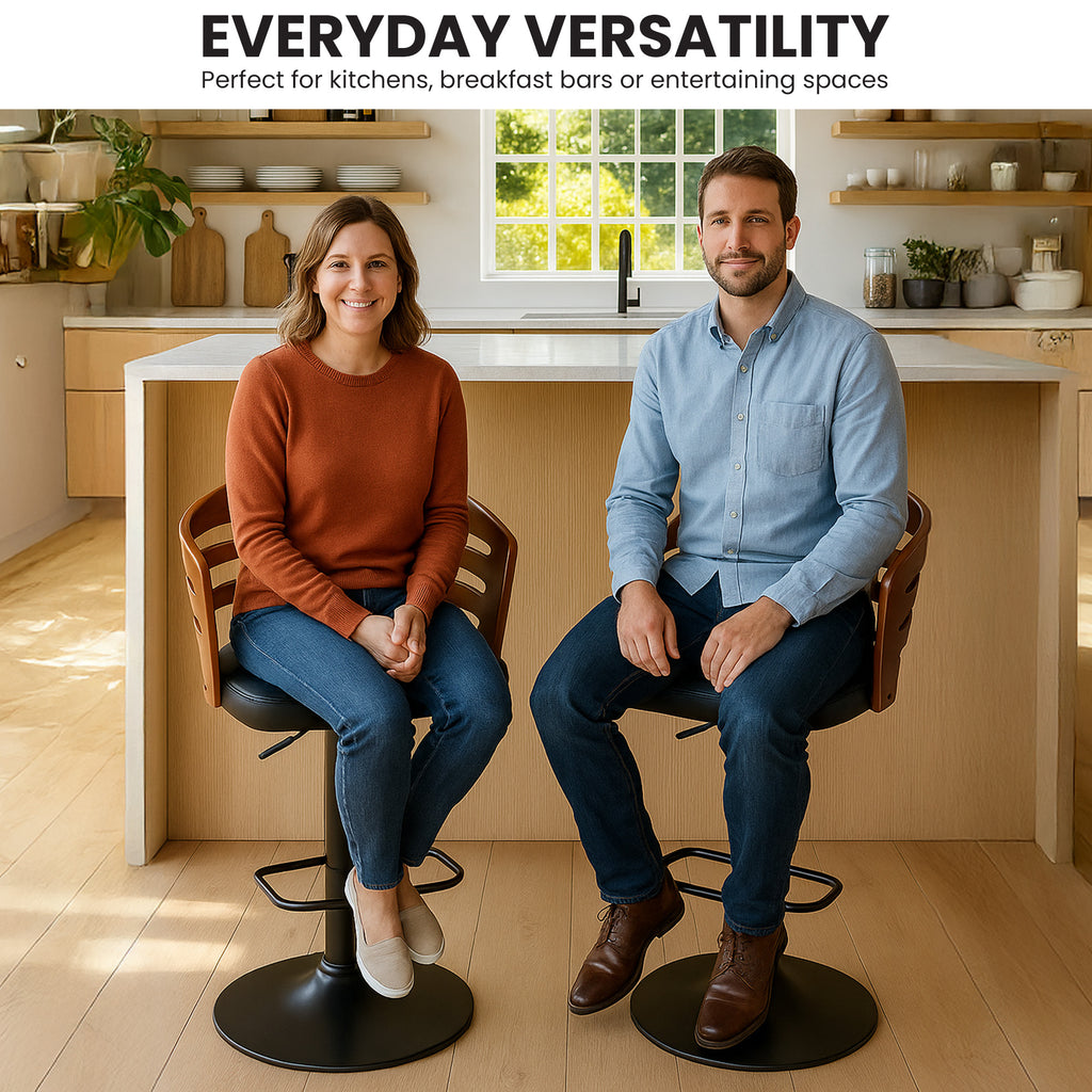 Sarantino Bentwood Barstool Leather Seat Walnut Metal Base