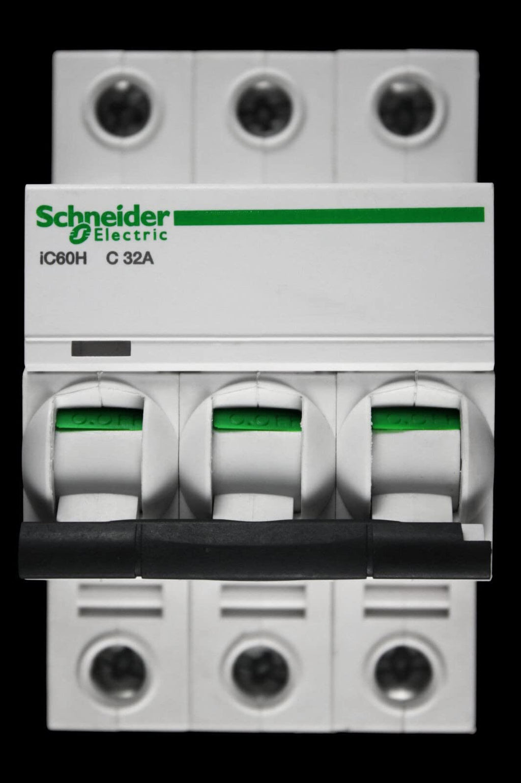 SCHNEIDER ELECTRIC 32 AMP TYPE C 10 KA TRIPLE POLE MCB CIRCUIT BREAKER 415V IC60H A9F54332 ACTI9 BS EN 60898
