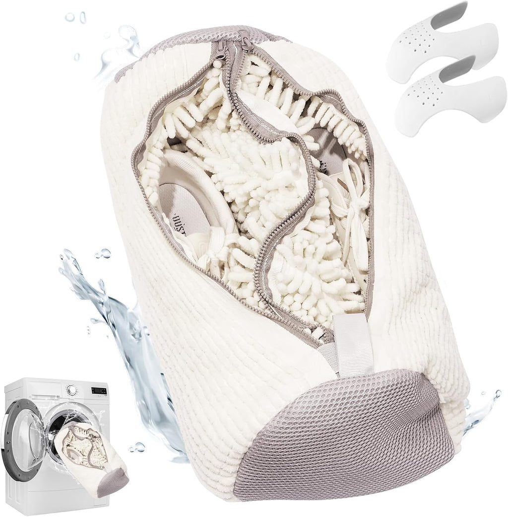 Protect your shoes in the washing machine This doublepocket shoe wash bag with a concealed zipper offers optimal protection for washing machine use. Thanks to the 360degree cleaning system, your shoes will be thoroughly cleaned without being damaged. The white color makes it a stylish accessory for any laundry room. Key features Double protection Double pocket with a concealed zipper prevents damage Thorough cleaning 360degree cleaning ensures optimal washing results Safe to use Specially designed for washing machine use Durable material Reusable shoe wash bag for longterm use Why this laundry bag is so practical Prevents damage to shoes in the washing machine Protects the washing machine from wear and tear from shoes Suitable for sneakers and other washable shoes Easy to use and store Instructions for use Place shoes in the shoe wash bag Close the double pocket with a concealed zipper Wash as usual for washing machine use Enjoy 360degree cleaning without damage Product specifications Type Shoe wash bag for washing machine Design Double pocket with concealed zipper Function For washing machine use Cleaning 360degree cleaning Color White