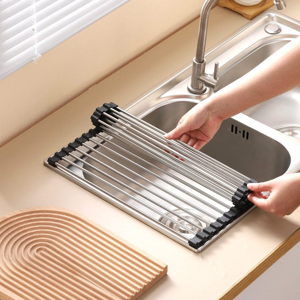 Silver Over Sink Draining Rack with Anti-Slip Grips