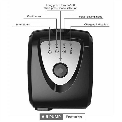 Features: Three working modes: continuous/intermittent/power saving mode It contains a rechargeable lithium battery, it can be charged by solar energy or DC/AC power, Lithium batteries can also operate automatically for 24 hours in the event of a power outage. 3.5W solar panel can convert light energy into electric energy, it works better when the sunlight is intenser, it's energy-saving and eco-friendly to use. Long press to turn on/ off the air pump, short press to choose mode. 3 modes for selection according to practical use: continuous/ intermittent/ power saving mode. Dual air flow pipe with dual air bubble stone provide total 2.4L flow per minute for more even and pervasive air distribution, thus bringing excellent water circulation. Perfect for adding oxygen into various aquariums, fish tank, pools and small ponds, especially suitable for wild fish and small amounts of aquatic transportation oxyen increasing. Rechargeable design, 4400mAh large capacity battery, fits for both home and outdoor use, effectively solving the problem of fish being starved of oxygen when the power goes off. Easy to use, just put the air stones in the water and install the solar panel, the pump will start to work in seconds once exposed to sufficient sunlight. Suction cups in the back of the pump help it tightly stuck to the surface of the fish tank. Besides, it comes with complete accessories for easy carrying or hanging on the wall. Made of high-quality material, not easy to break or deform, durable to use, long lifespan. Low noise, quiet to use, will not disturb sleep or work. Note: Size and color may be slightly different due to manual measurement and different lighting conditions. Thanks for understanding. Specifications: Color: Black Material: ABS + PC Solar Panel: 6V/ 3.5W Built-in Battery: 2 * 3.7V 2200mAh Lithium Battery Charging: DC 5V/ 1A Power: 0.8W Pressure: 130KPa Flow: 1.2L/min * 2 Current: 250mA Solar Panel Size: 22 * 13.5 * 1cm / 8.7 * 5.3 * 0.4in Pump Size: 10.3 * 8.3 * 4cm / 4.1 * 3.3 * 1.6in Package Size: 23.8 * 14 * 5.5cm / 9.4 * 5.5 * 2.2in Package List: 1 * Solar Panel Set (2m wire length) 1 * Air Pump Set 1 * USB Cable 1 * Installation Set 1 * User Manual