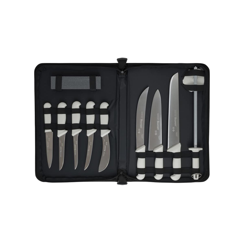 COMPLETE KNIFE SET: This Starrett professional knife set includes different sizes of boning, chef's, skinning, steak, and butcher's knives, as well as sharpening tools for maintenance. With this comprehensive set, you'll have everything you need to tackle any kitchen task easily.
