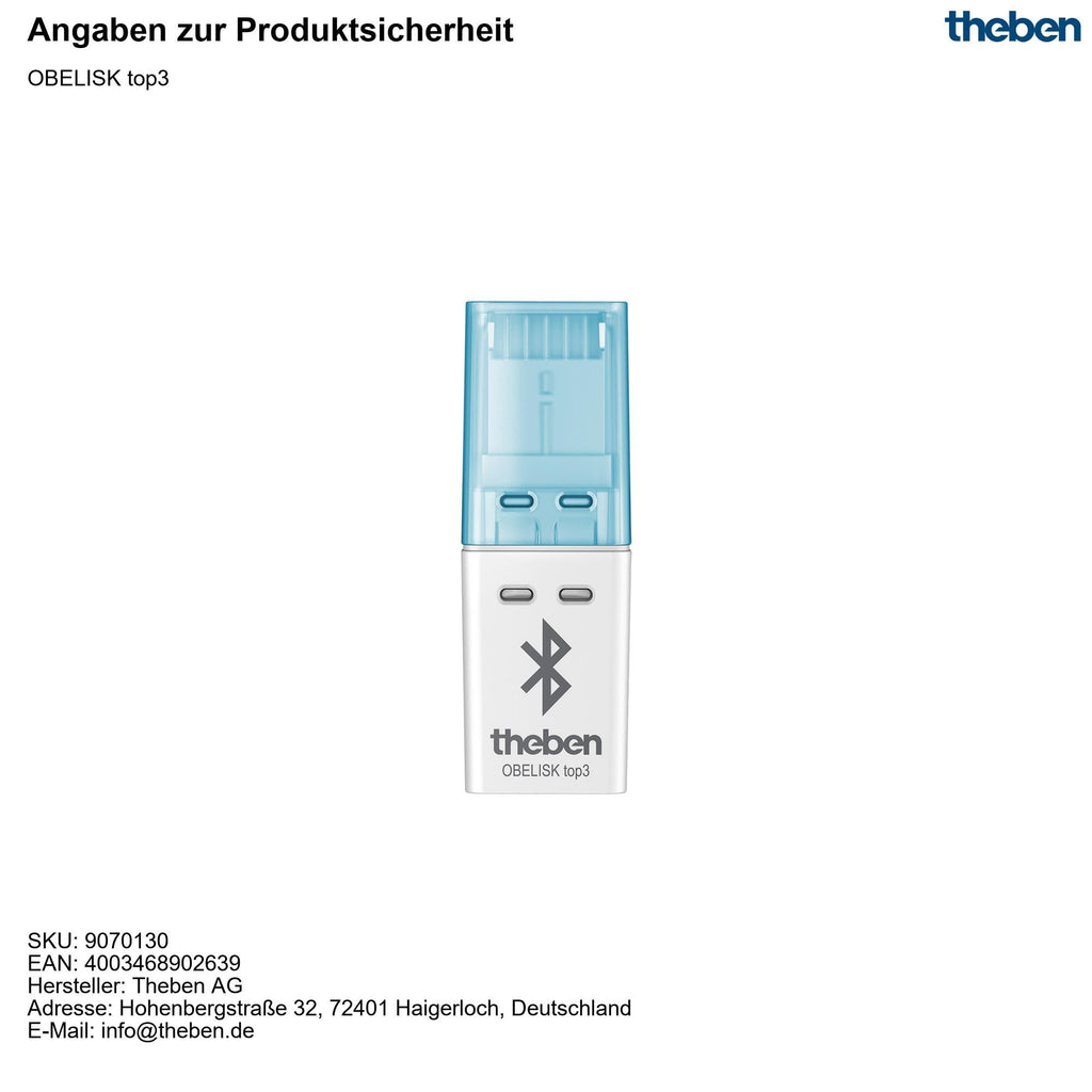 - Protect your digital timers from manipulation: the safe transfer of the programs via Bluetooth OBELISK top3 Low Energy Dongle (sold seperately under Art.-No. 9070130) to the top3 device makes it possible