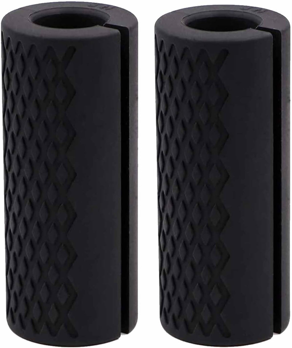 Thick Dumbbell & Barbell Grips for Weightlifting - High-Density Silicone Rubber, Non-Slip Gym Muscle Growth, Hand Stress Relief, Arm Blaster Adapter 1 Pair Black