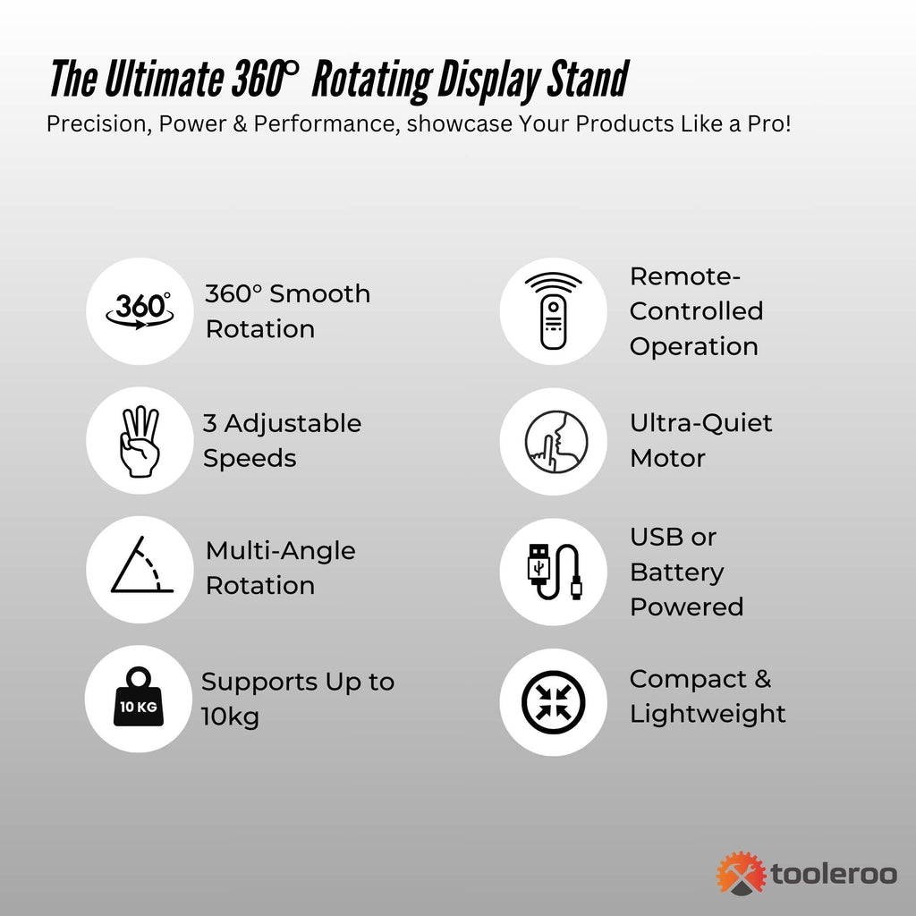 Tooleroo Electric 360 Rotating Product Display Stand Black for Merchandise Video