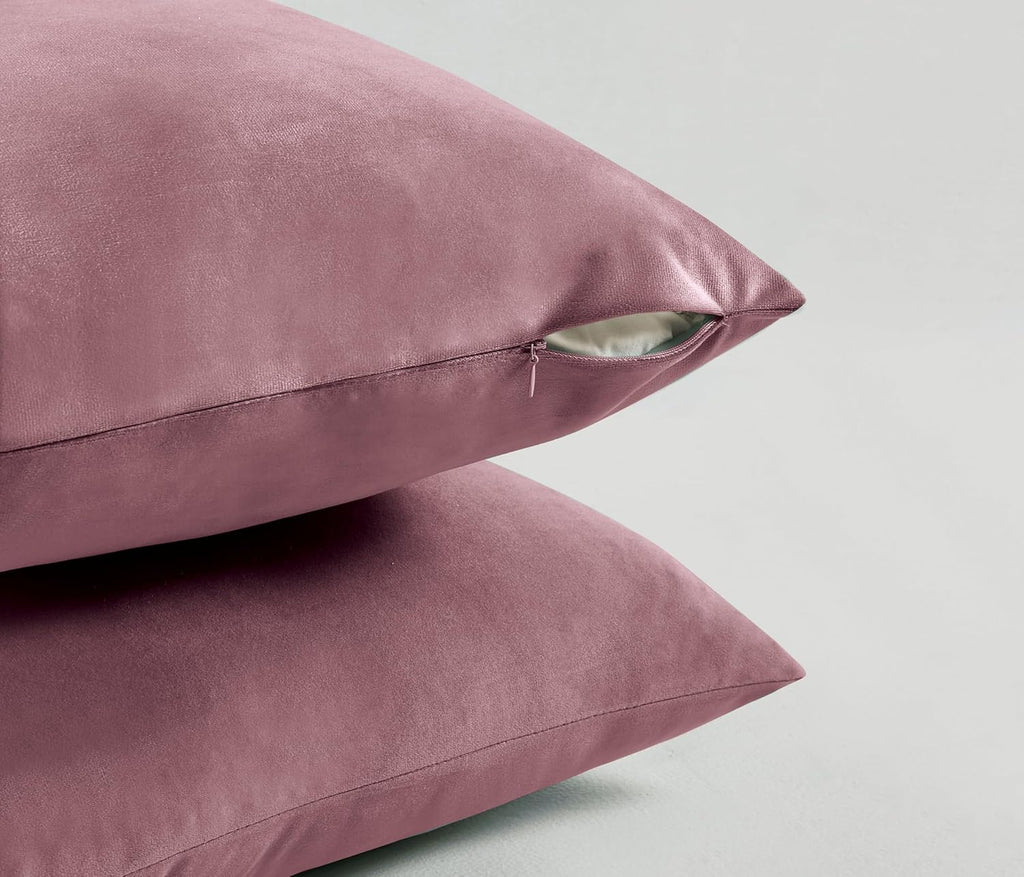Twin-Pack Velvet Cushion Covers - Soft Microfibre Cushion Covers with Hidden Zipper Blush, 30cm*50cm