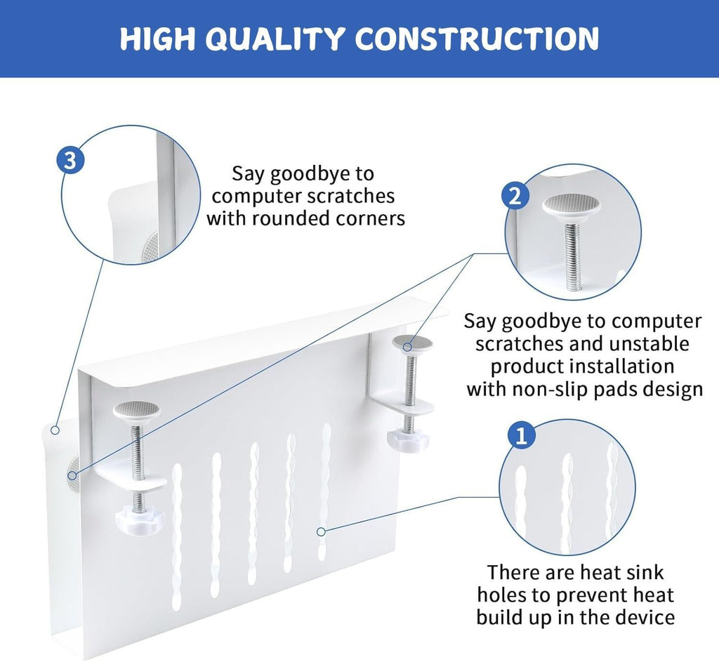 Under Desk Side Laptop Holder Storage with No Drill Cable Management Tray and Pen Storage for Office and Home