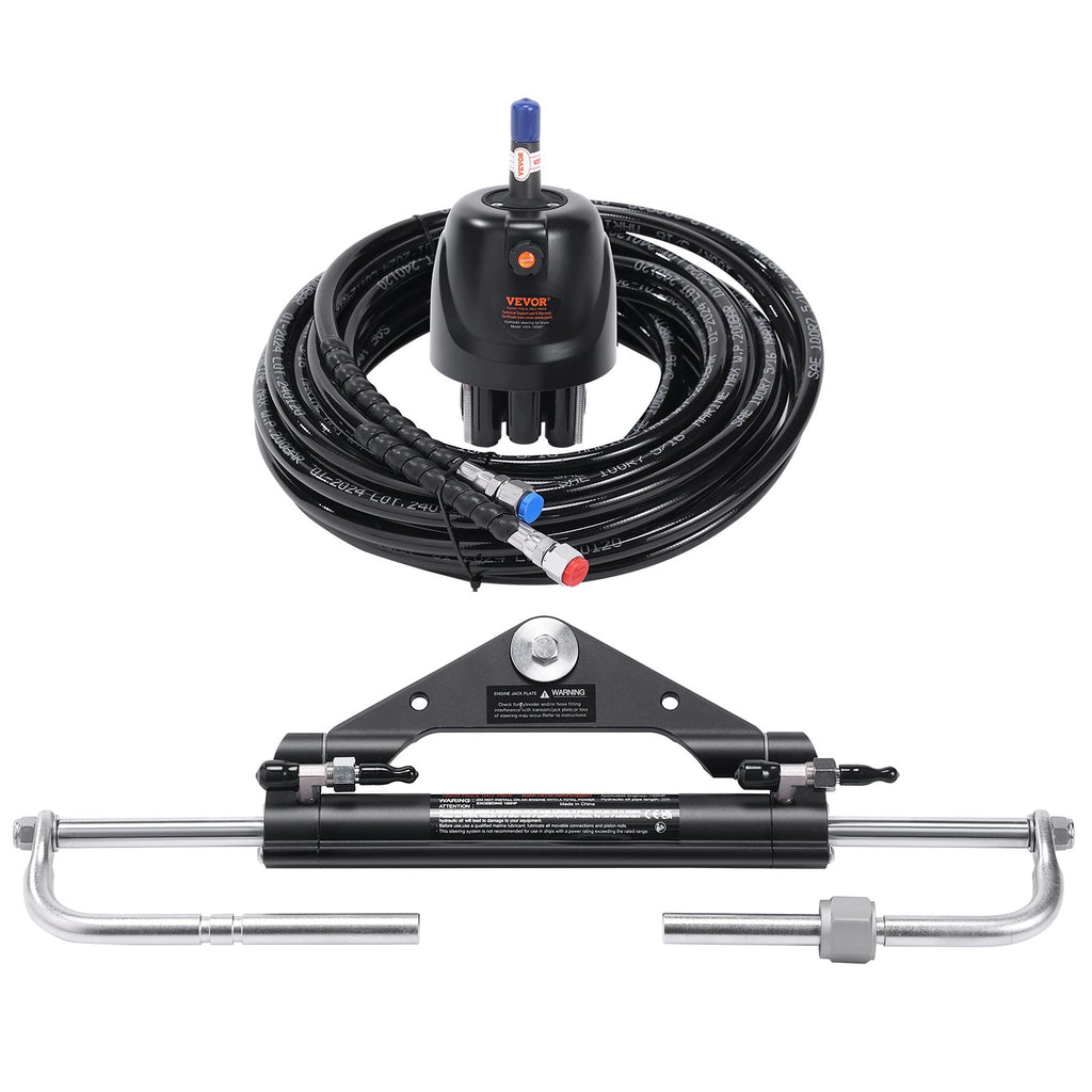 VEVOR 150HP Hydraulic Outboard Steering Kit Boat Marine System, Built-in Two-Way Lock Cylinder, 150HP Pump and High-Strength Nylon Hose for Single Station, Single-Engine use