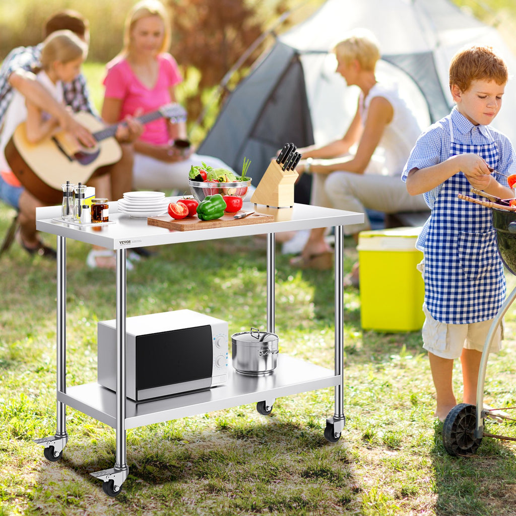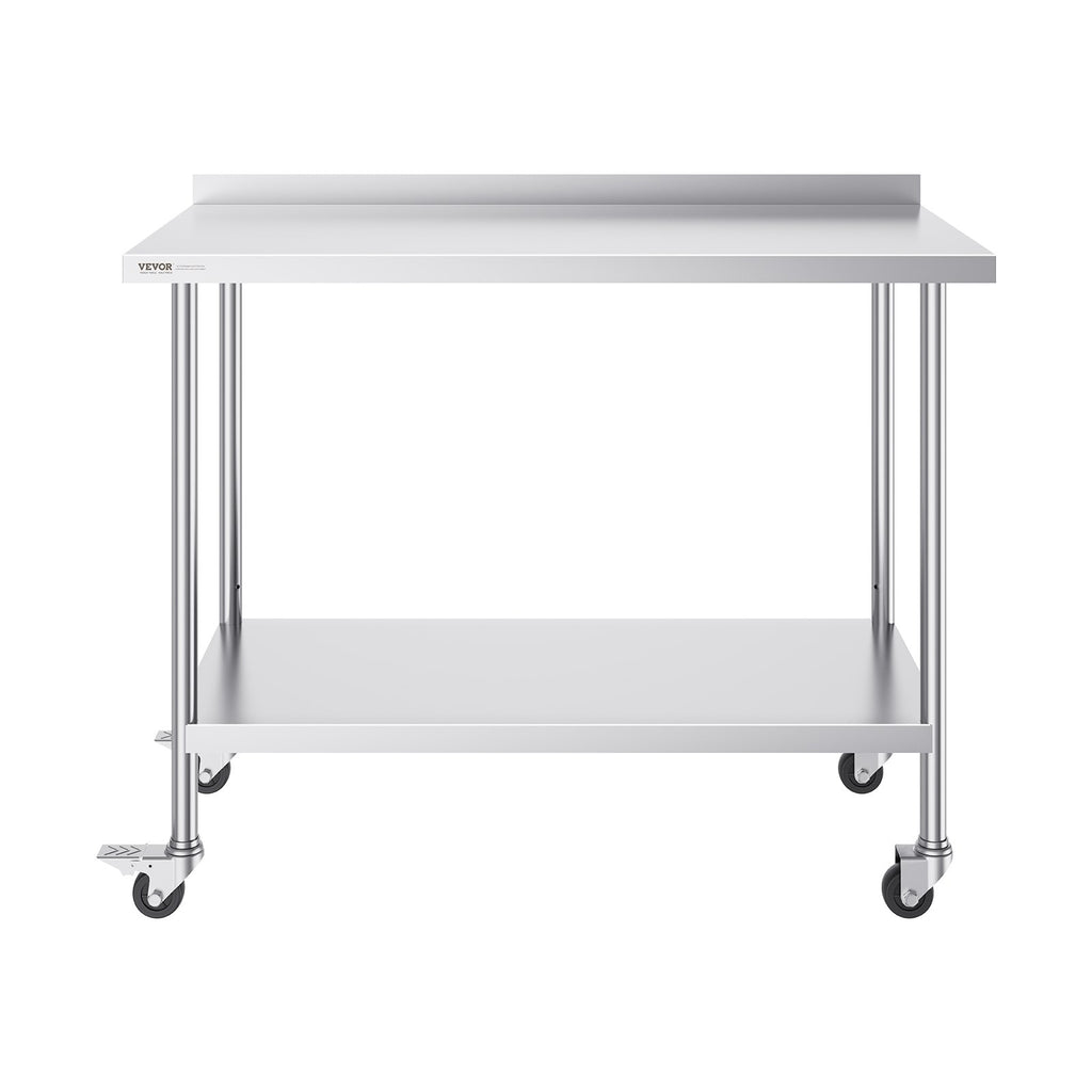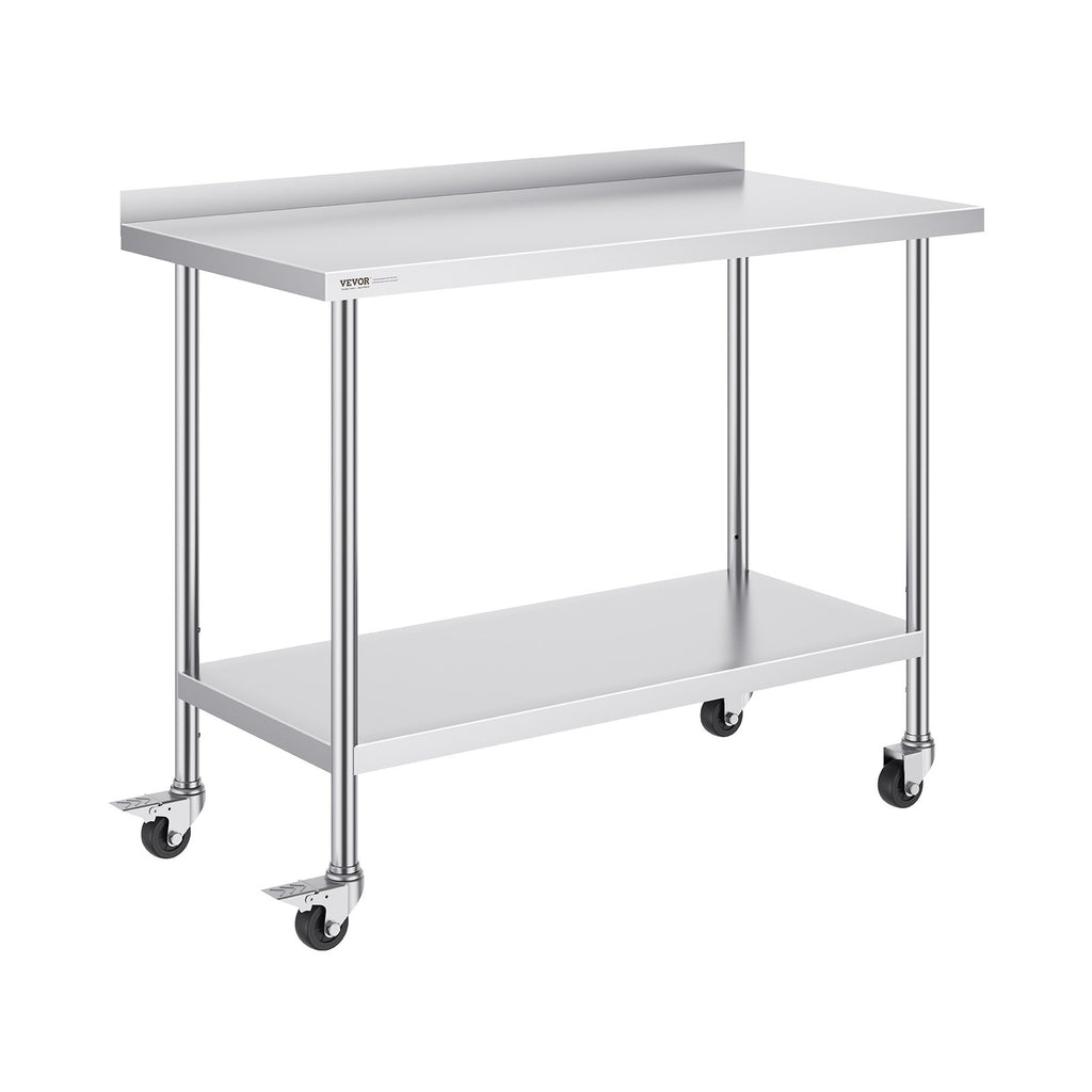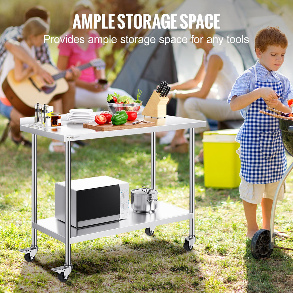 VEVOR 24 x 48 x 40 Inch Stainless Steel Work Table, Commercial Food Prep Worktable with Casters, Heavy Duty Prep Worktable, Metal Work Table with Adjustable Height for Restaurant, Home and Hotel