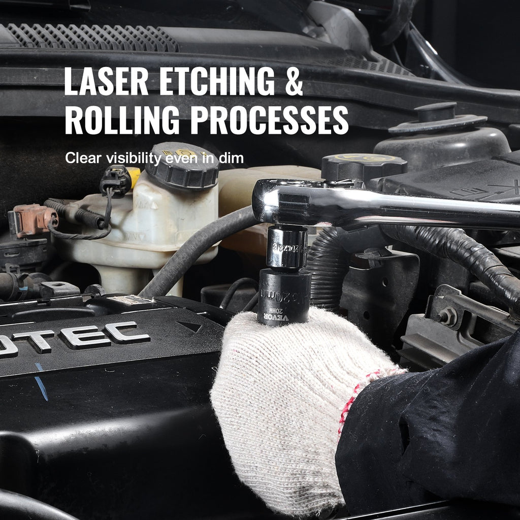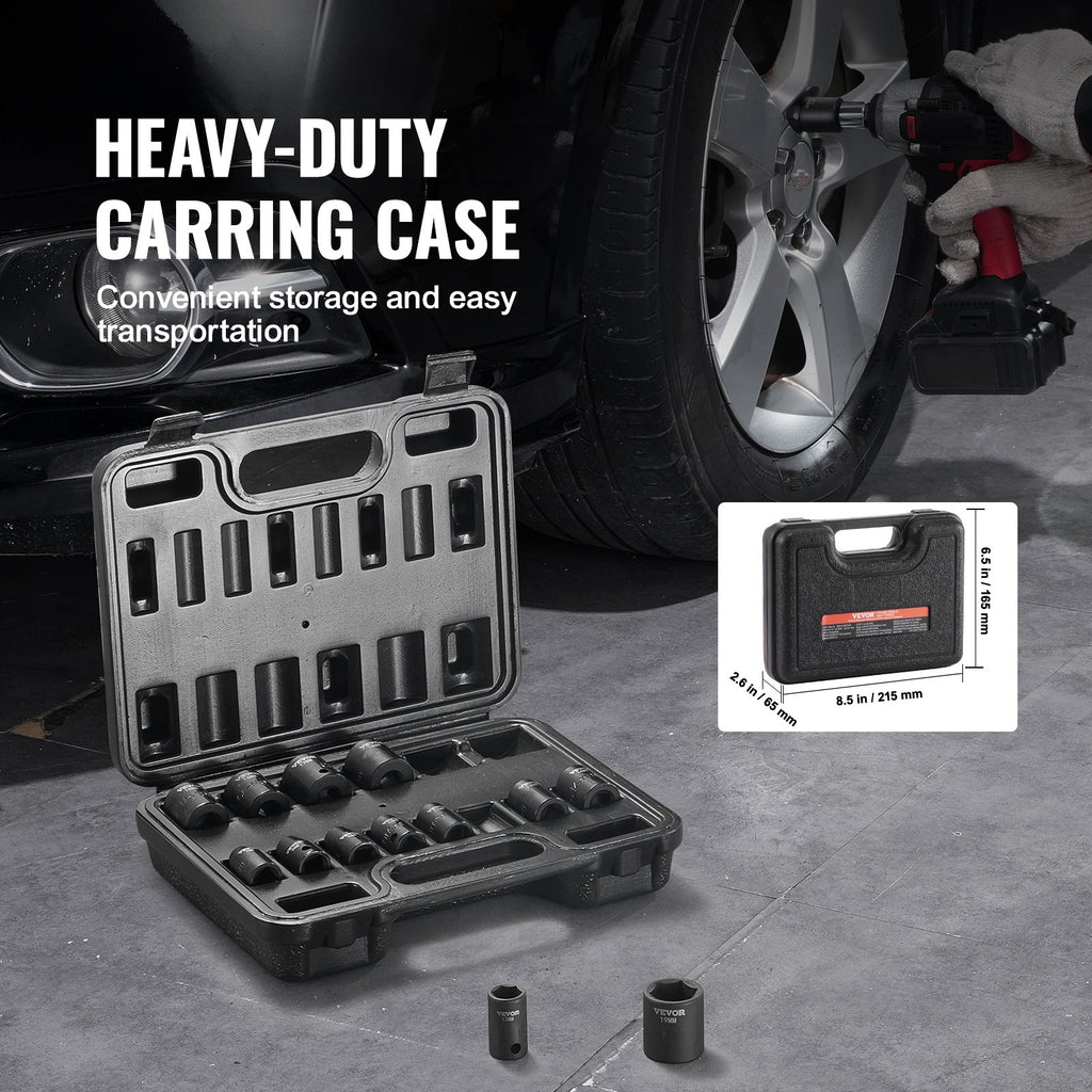 VEVOR 3/8" Drive Impact Socket Set, 14 Piece Shallow Socket Set Metric 7-20mm, 6 Point Cr-Mo Alloy Steel for Auto Repair, Easy-to-Read Size Markings, Rugged Construction, Includes Storage Case